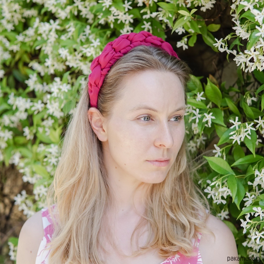 Uniwersalny rozmiar sprawdzi się przy krótkich bobach i długich falach; pleciony wianek pięknie kadruje twarz, zwłaszcza przy upiętych włosach.