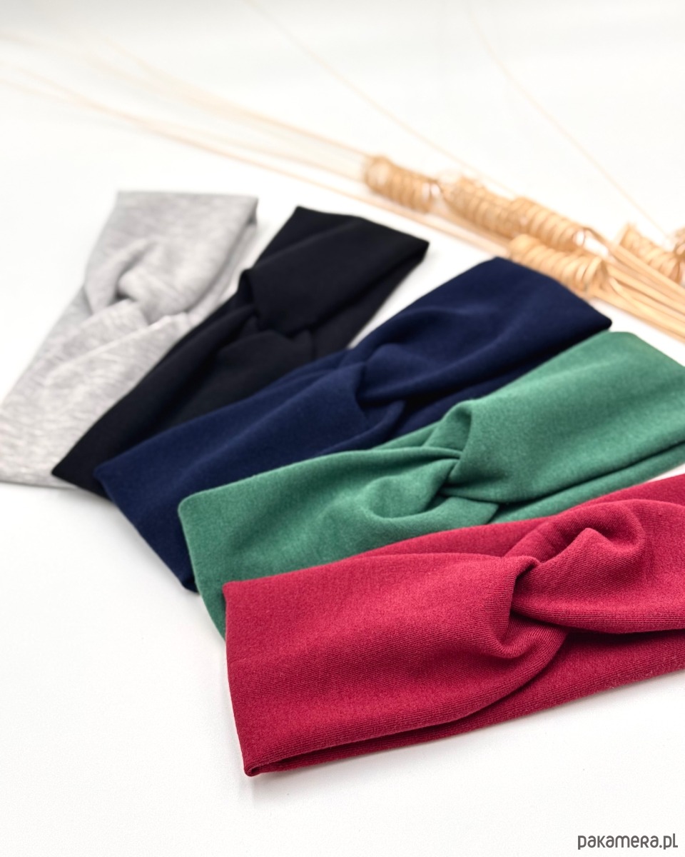 Materiał jest rozciągliwy, co umożliwia dopasowanie opaski do każdego obwodu głowy. Przeplatana, bardzo wygodna.