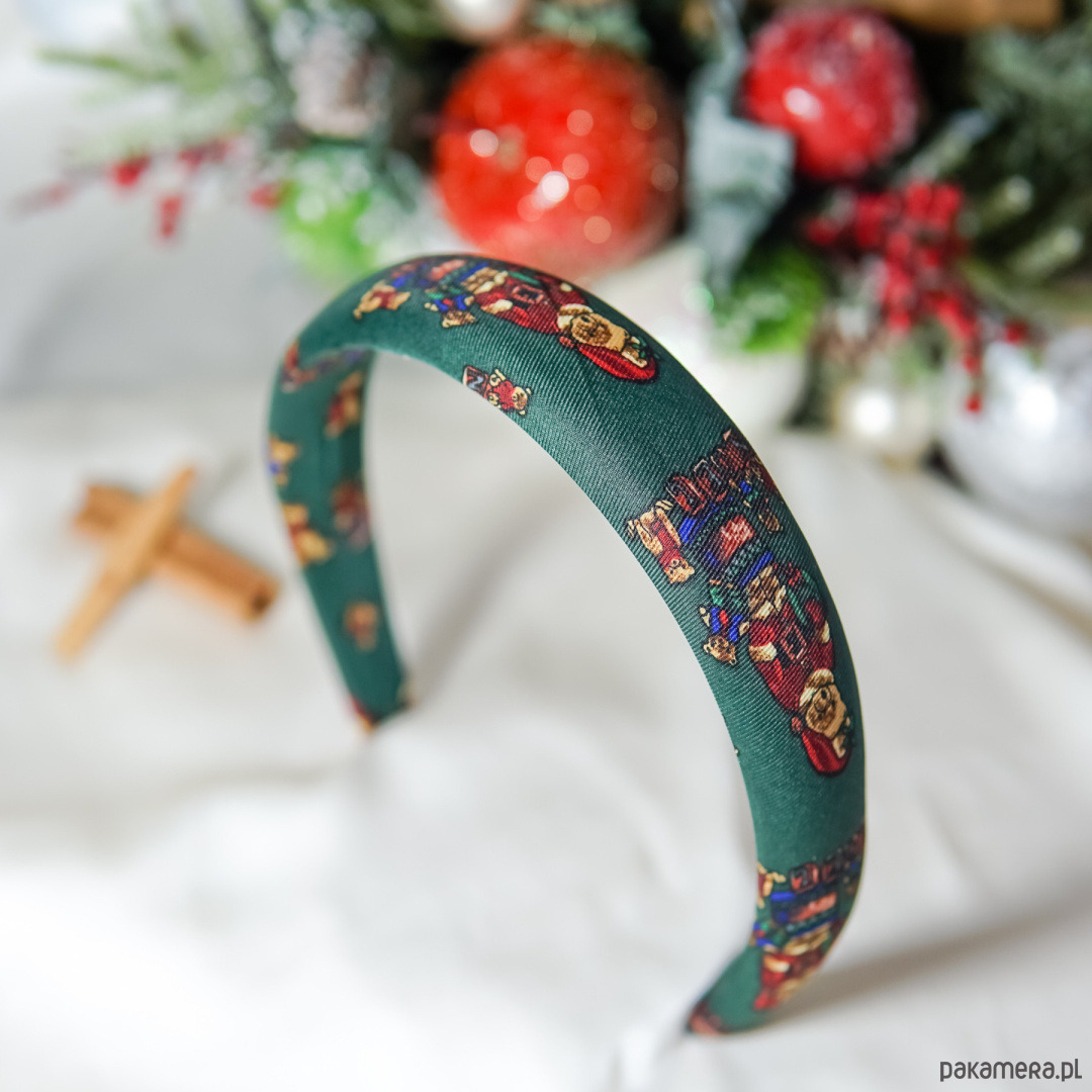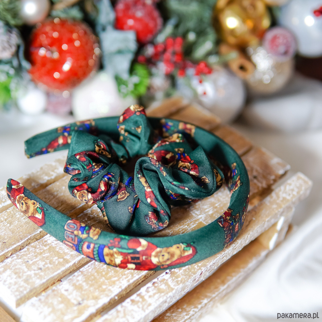 Opaska na włosy stworzona z jedwabnego, męskiego krawata. Tkanina jest wyjątkowo wzorzysta i delikatna. Model ozdoby na włosy w niecodziennym wydaniu. Lekka i wygodna opaska na głowę dla kobiet, które chcą podkreślić swoją fryzurę. Opaska jest w uniwersalnym rozmiarze, dopasowuje się do kształtu głowy. Została stworzona na gotowej wyprasce o szerokości 3 cm. Bardzo miękka gąbka powoduje, że opaska odstaje od głowy na wysokość ok. 0,5 cm. Daje to efekt tiary lub delikatnej korony. Pasuje kobietom o długich i krótkich włosach. Sprawdzi się w niedbałych koczkach, kucykach oraz warkoczach. Urozmaici fryzury wieczorowe i codzienne.