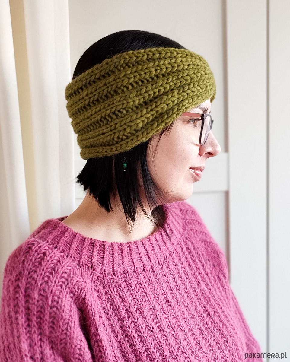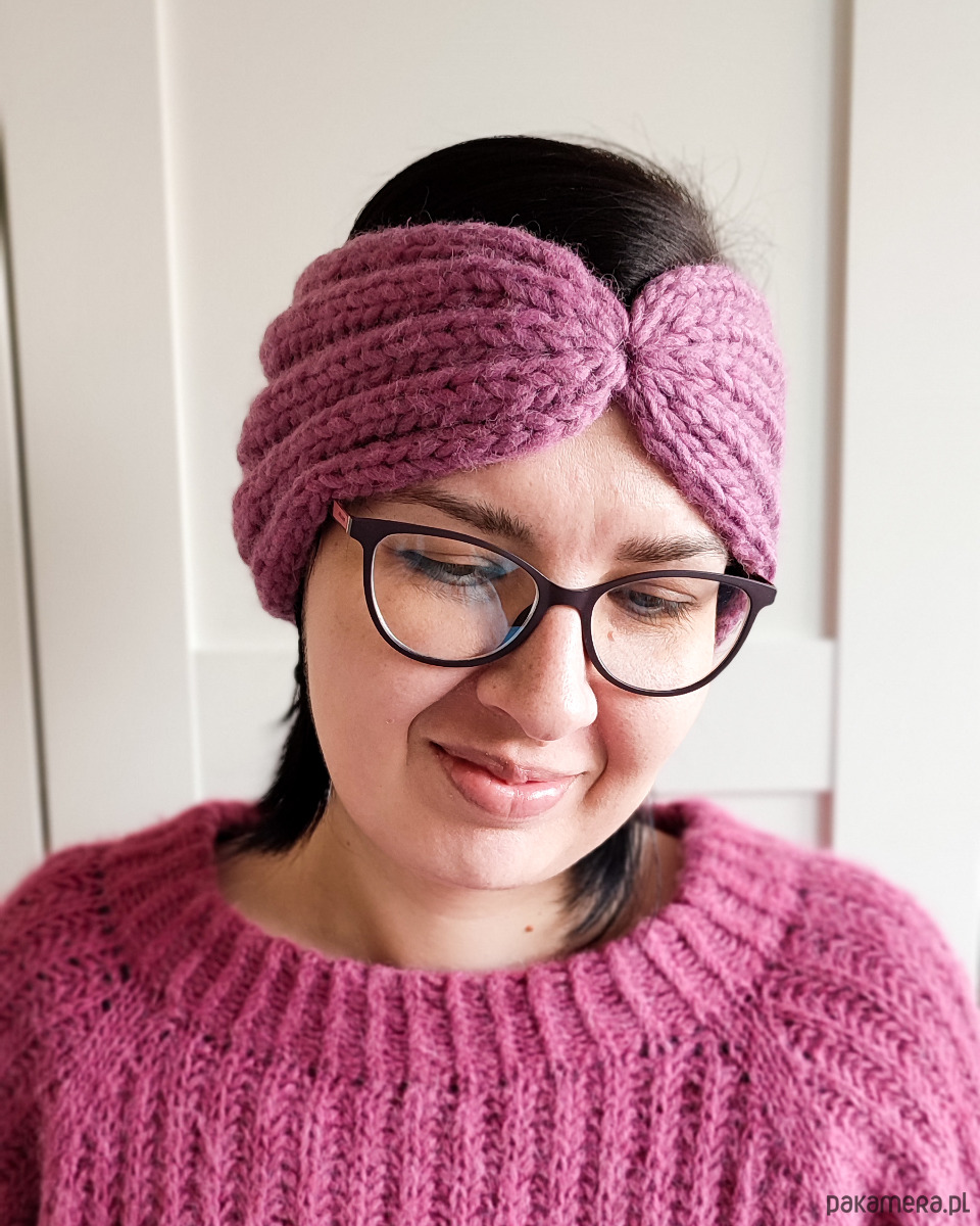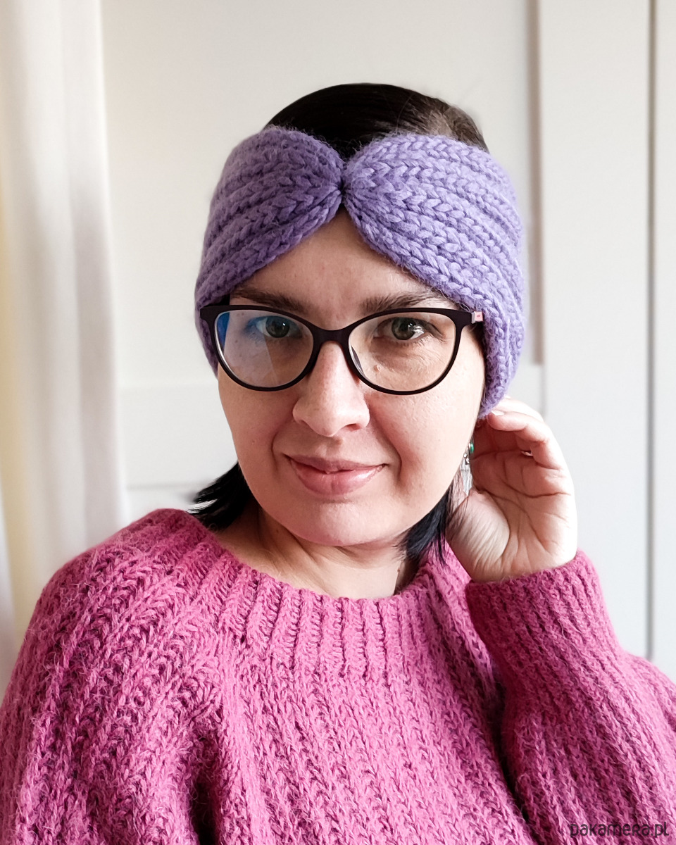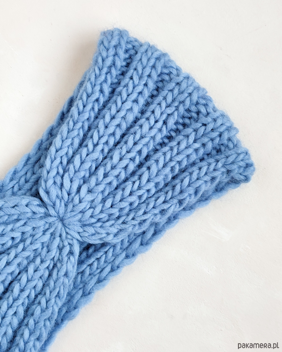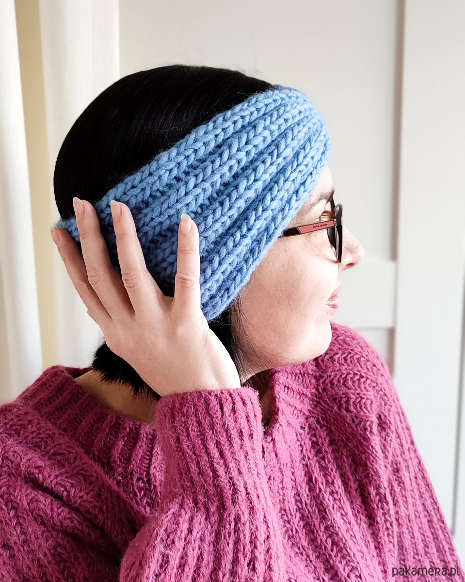 Wydziergana na drutach z ciepłej i miłej w dotyku włóczki w kolorze niebieskim.