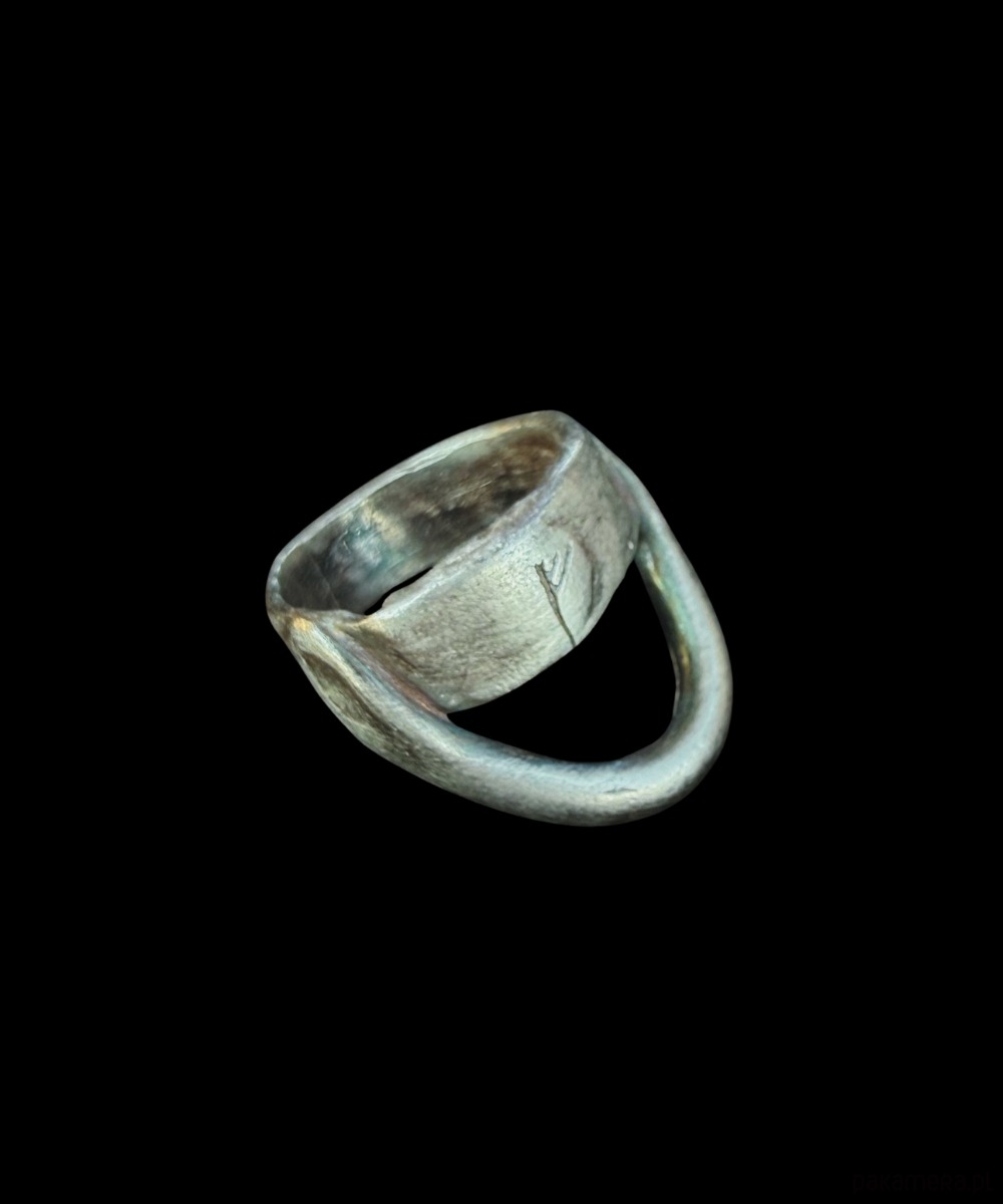 Pierścień ręcznie wykonany ze srebra, którego sercem jest wyryta runa Fehu, przyciąga uwagę swoją prostotą i niezwykłym znaczeniem.
