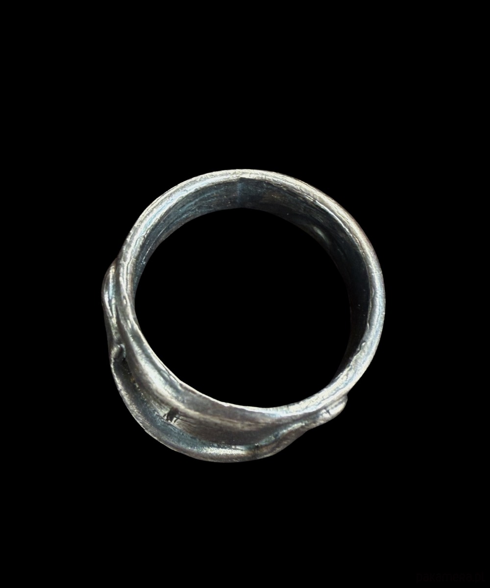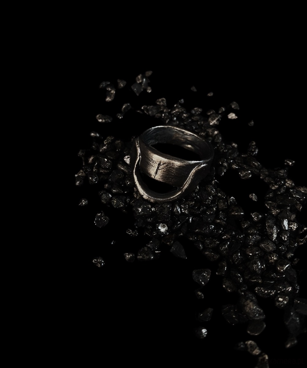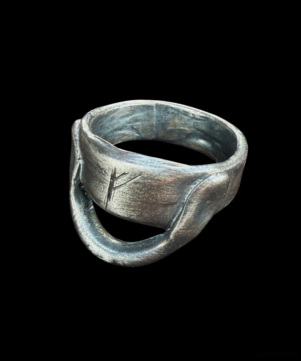 Pierścień ręcznie wykonany ze srebra, którego sercem jest wyryta runa Fehu, przyciąga uwagę swoją prostotą i niezwykłym znaczeniem.
