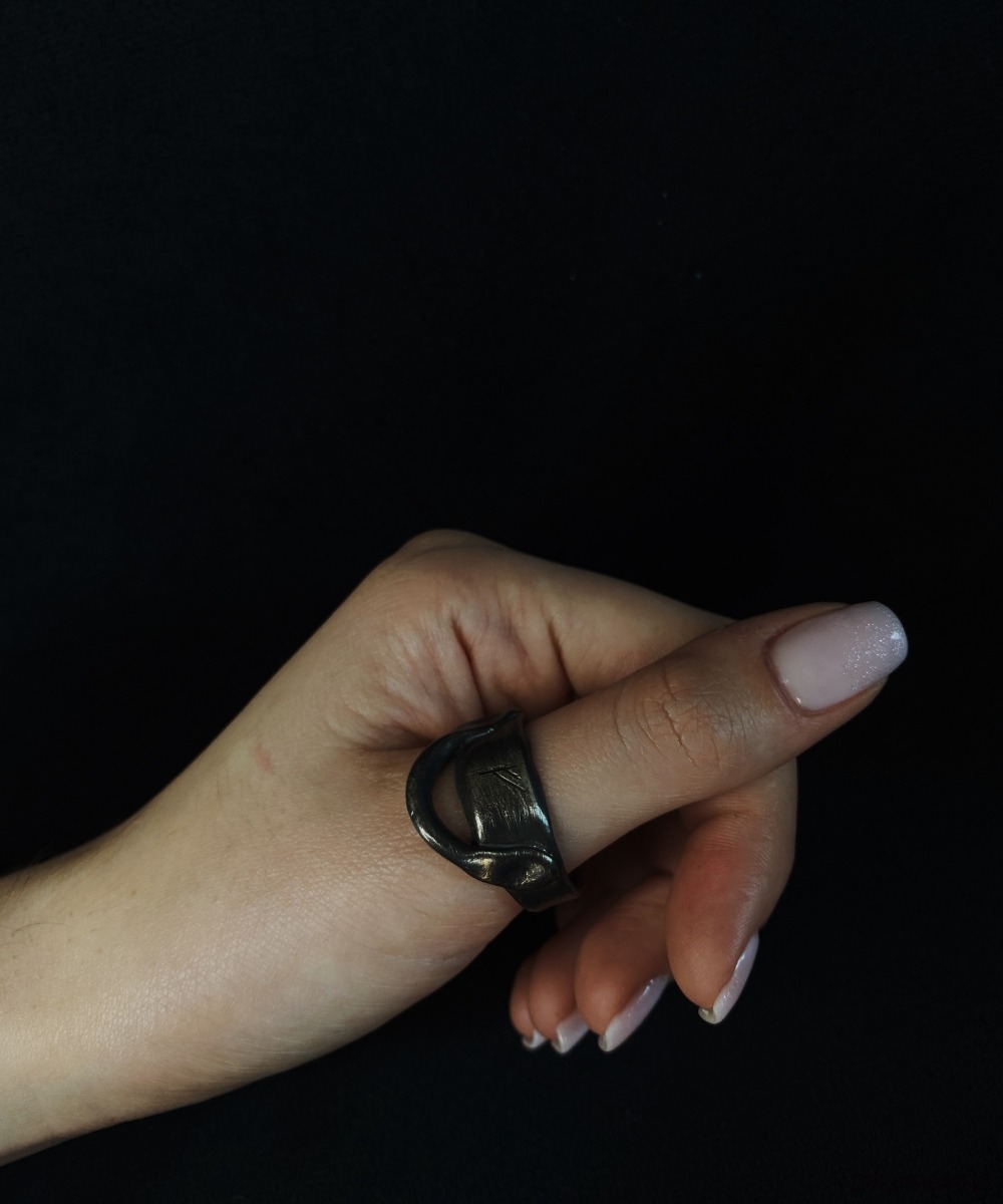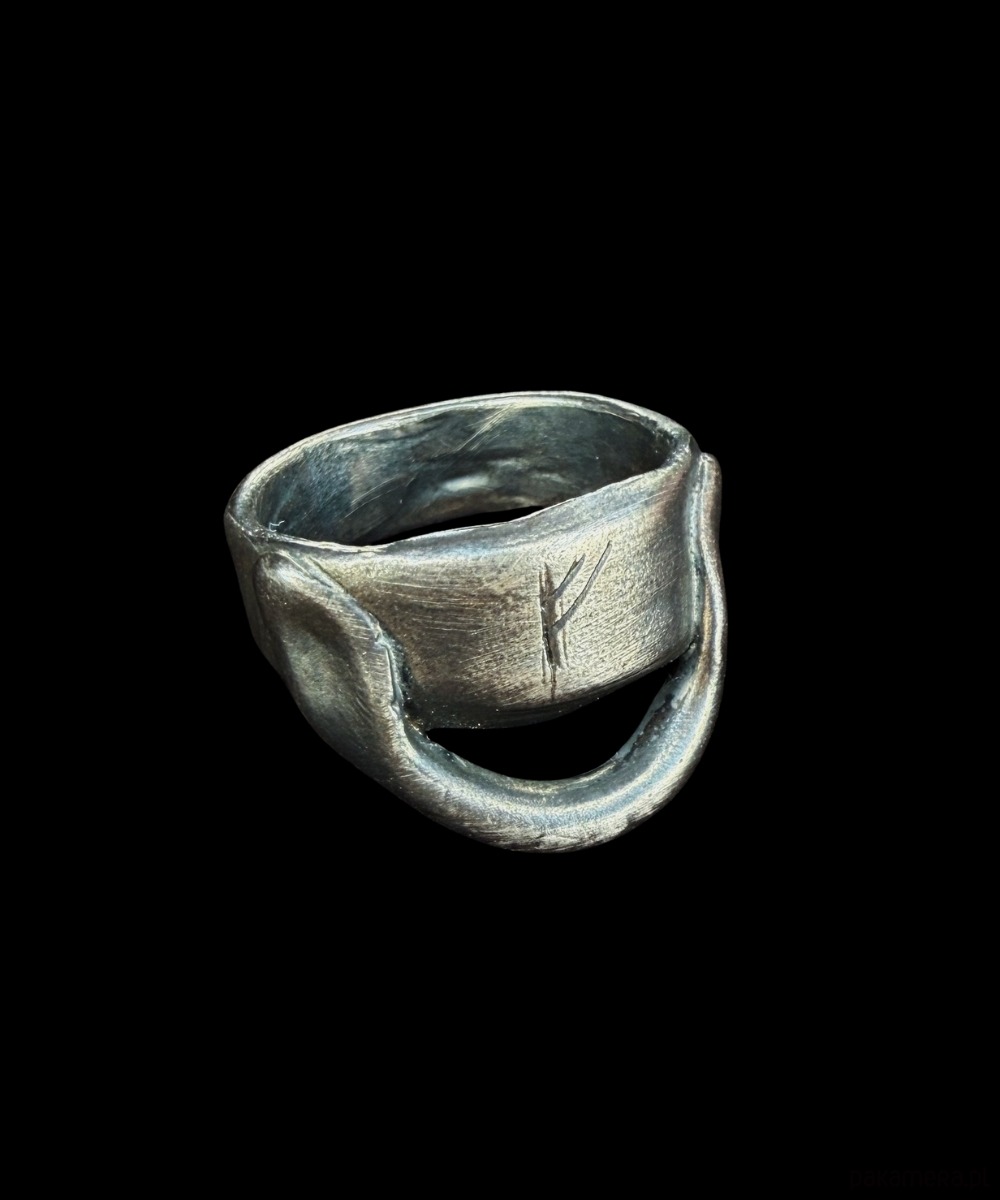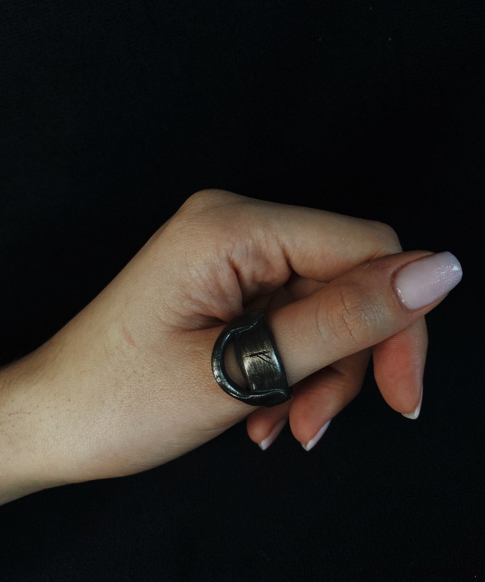 The ring handcrafted from silver, the heart of which is the engraved Fehu rune, attracts attention with its simplicity and unusual meaning.