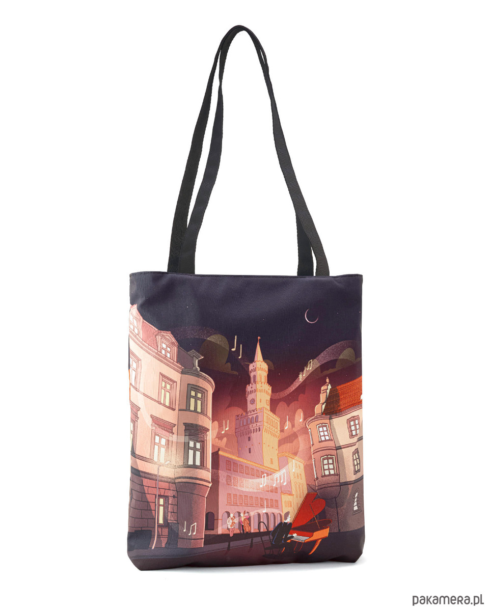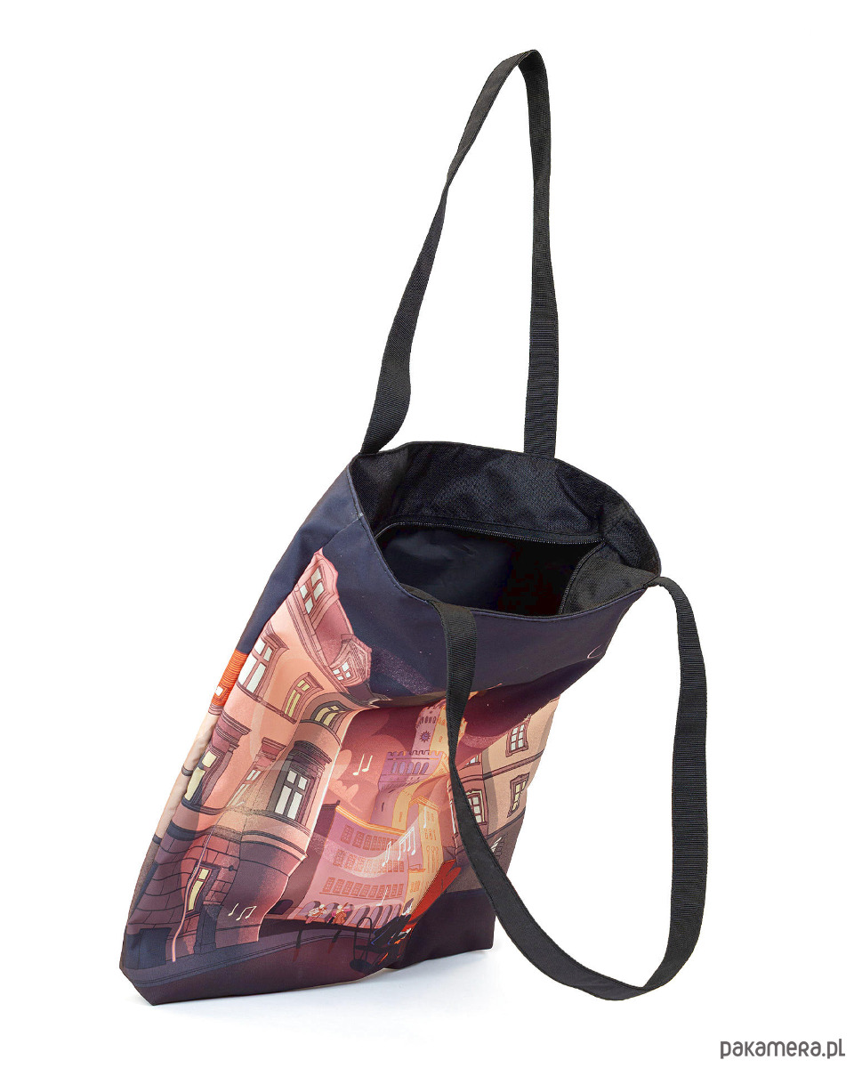Wewnątrz znajduje się kieszeń zapinana na zamek, rączki wzmocnione paskiem.