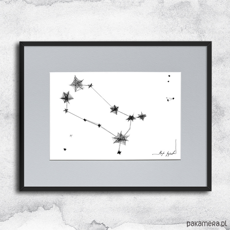 Grafika wykonana techniką mieszaną (giclée+rysunek isografem) na białym, matowym o lekko fakturowanej powierzchni, graficznym papierze Canson 250g. Unikalna kreska wygląda bardzo efektownie, zaś czarno-białe wykończenia wnętrz idealnie wpisują się puste w ściany nowoczesnych, minimalistycznych czy loftowych powierzchni.