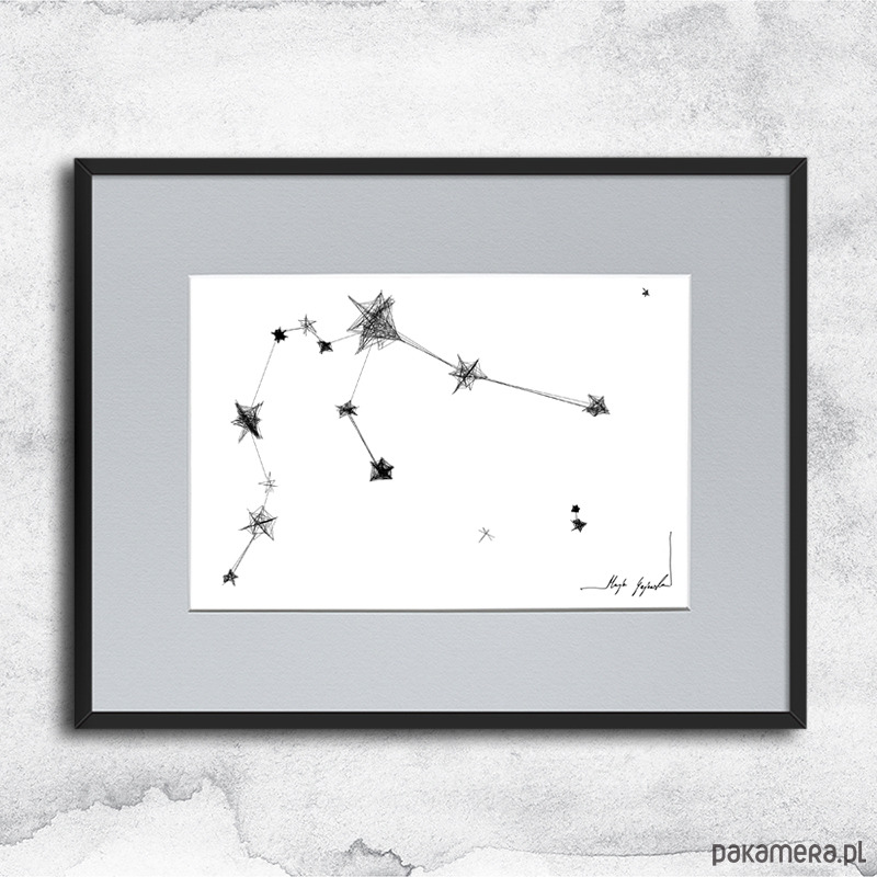 Grafika wykonana techniką mieszaną (giclée+rysunek isografem) na białym, matowym o lekko fakturowanej powierzchni, graficznym papierze Canson 250g. Unikalna kreska wygląda bardzo efektownie, zaś czarno-białe wykończenia wnętrz idealnie wpisują się puste w ściany nowoczesnych, minimalistycznych czy loftowych powierzchni.