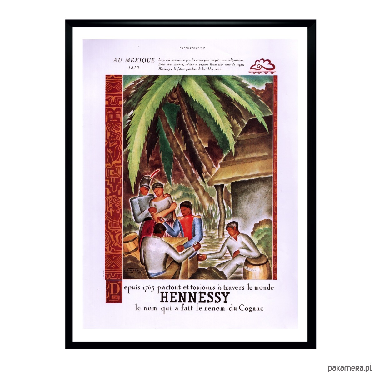 Oprawiona oryginalna francuska reklama koniaku HENNESSY z 1938 r, w czarnych ramkach o wymiarach 30 x 40 cm