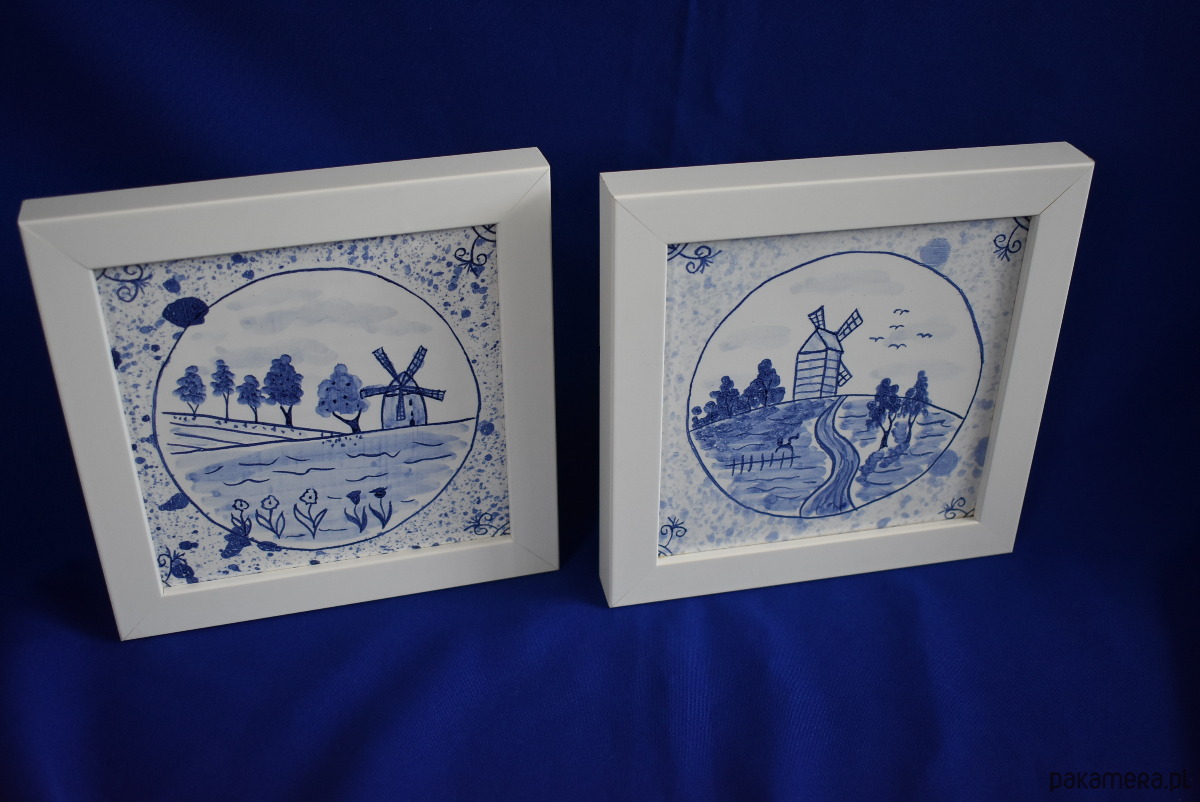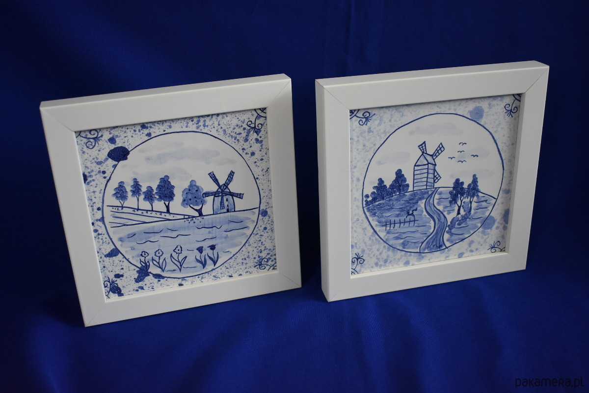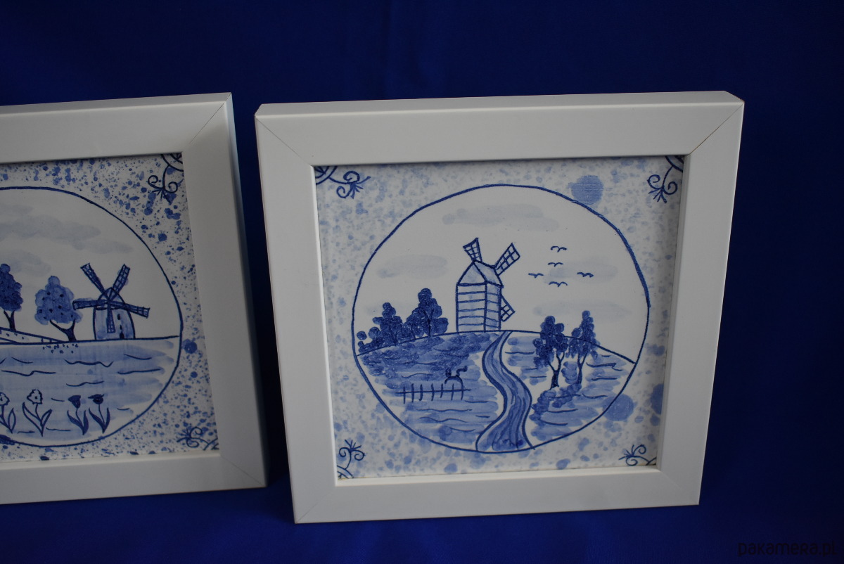 Oprawione kafelki w stylu holenderskim z zawieszką- wiatraki