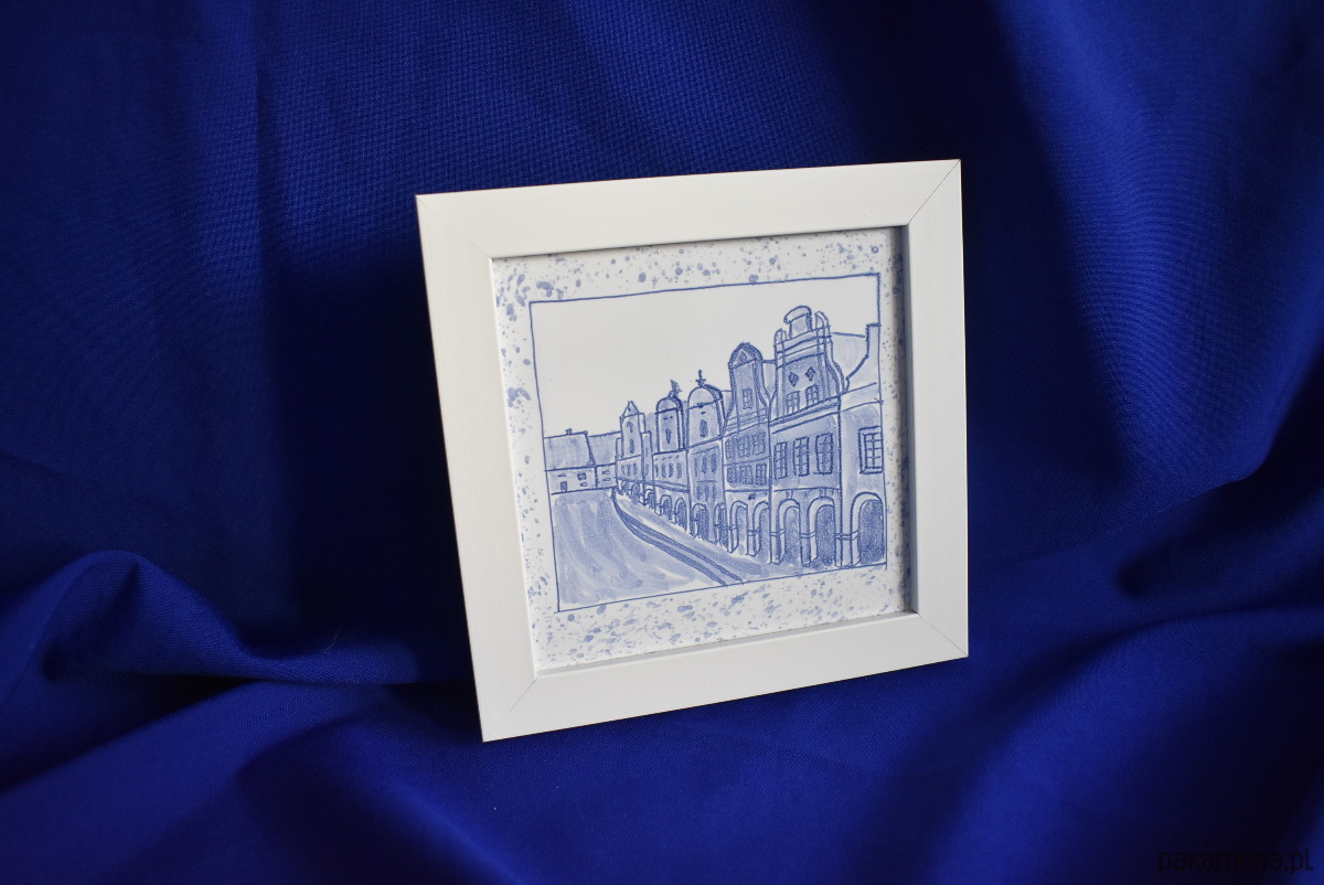 Wyjątkowy, ręcznie malowany kafelek przedstawiający kamieniczki w Chełmnie, oprawiony w elegancką białą ramkę. To połączenie tradycyjnego rzemiosła z ponadczasową estetyką, które pięknie dopełni wnętrze domu lub będzie oryginalnym prezentem.