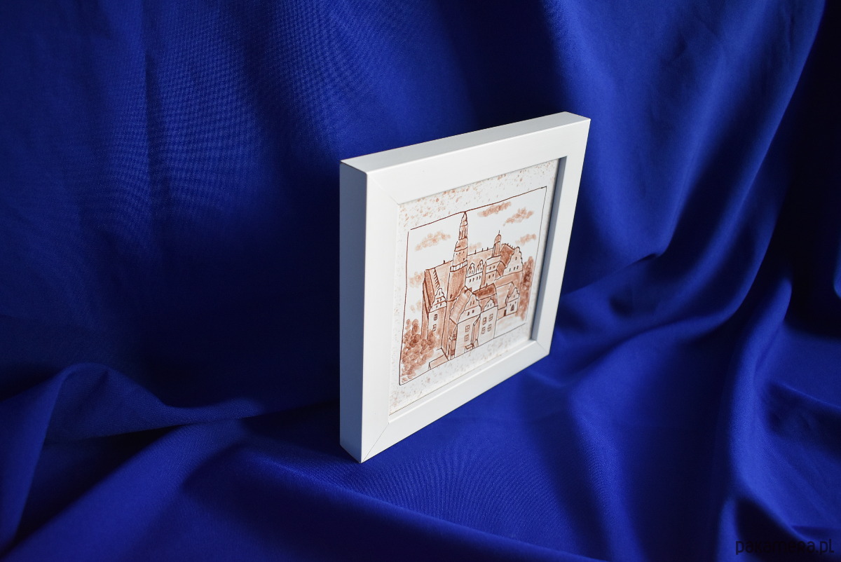 Wyjątkowy, ręcznie malowany kafelek przedstawiający Zamek Książęcy w Oleśnicy, oprawiony w elegancką białą ramkę. To połączenie tradycyjnego rzemiosła z ponadczasową estetyką, które pięknie dopełni wnętrze domu lub będzie oryginalnym prezentem.
