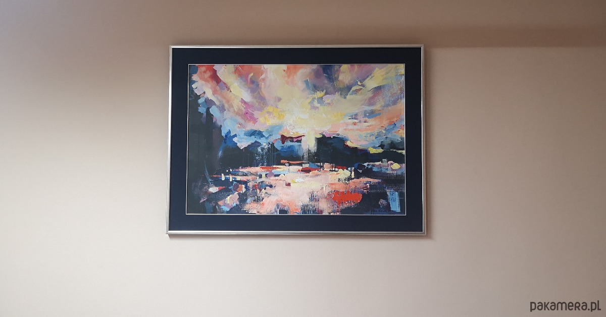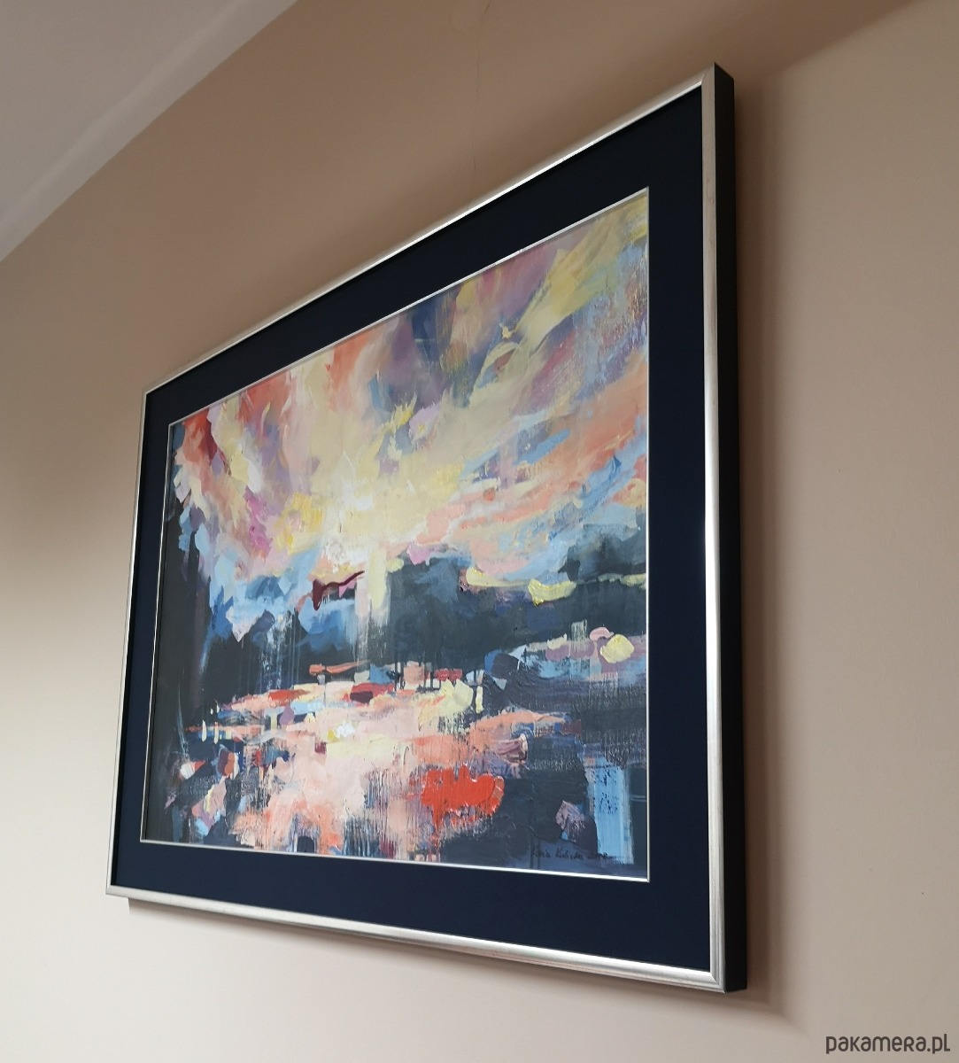 Oprawiony obraz jest zabezpieczony werniksem, nadaje się od razu do powieszenia na ścianie.