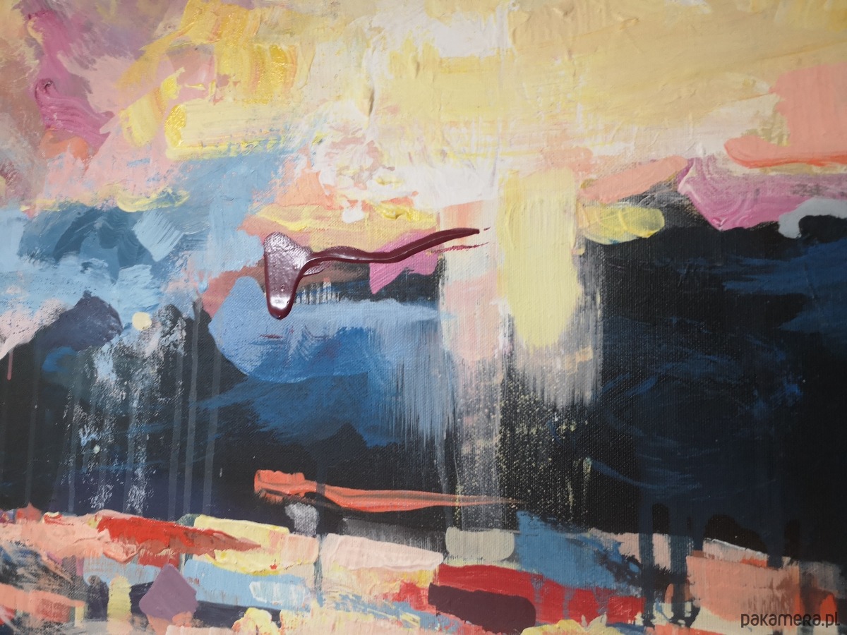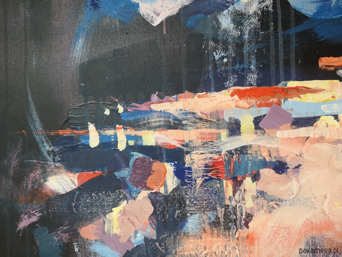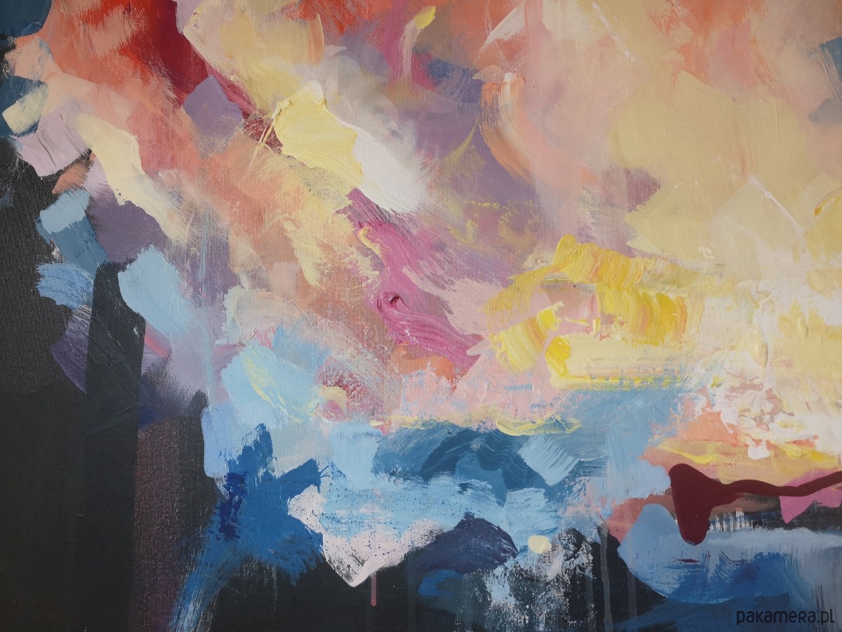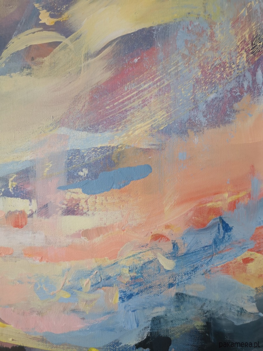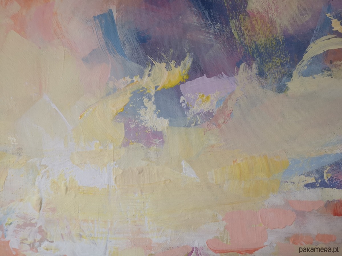 Autorski obraz malowany farbami akrylowymi na płótnie, pozwalający przenieść się do abstrakcyjnej, delikatnej rzeczywistości, tak zgoła innej dla każdego z nas.