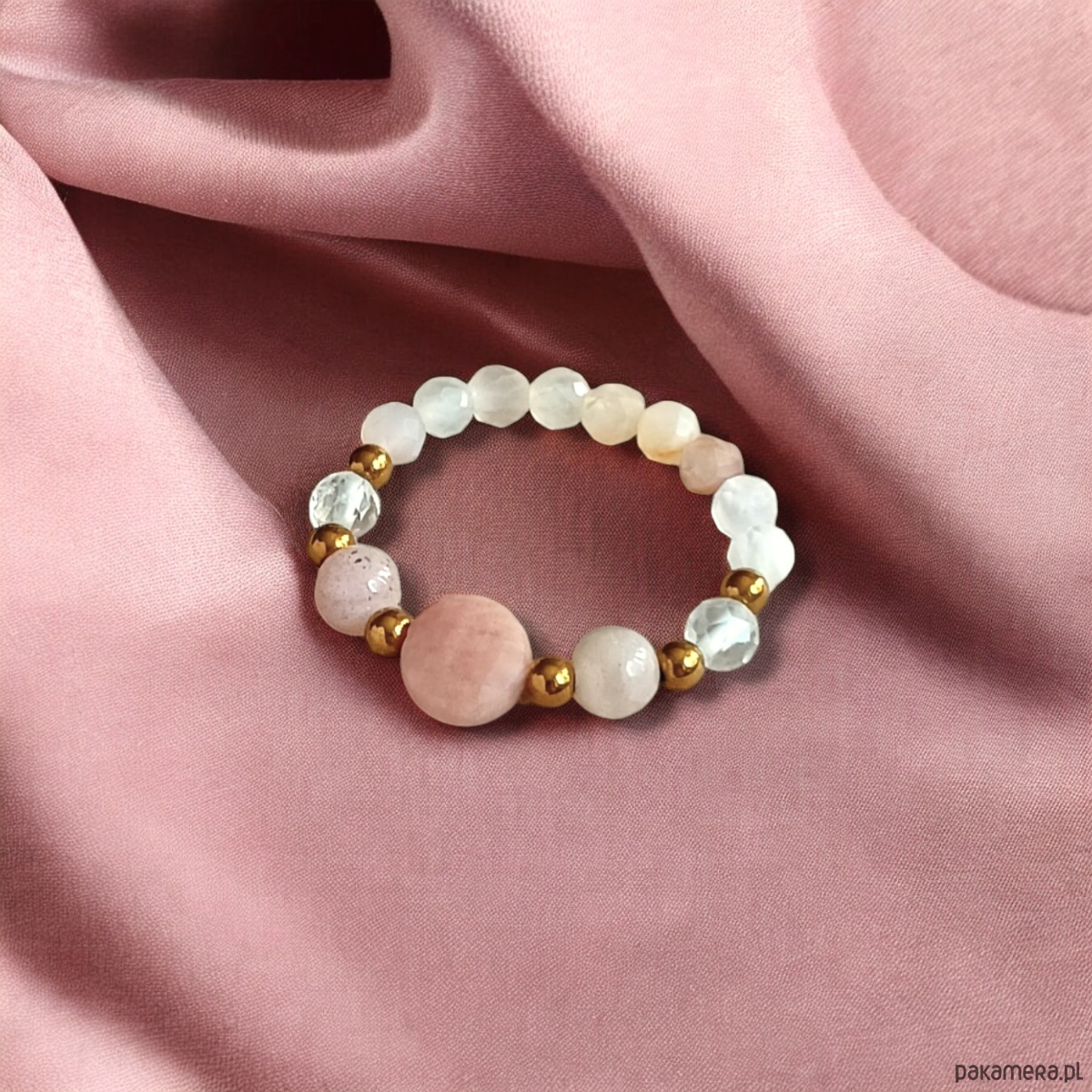OPTYMIZM - pierścionek - kamień słoneczny, kryształ górski, hematyt