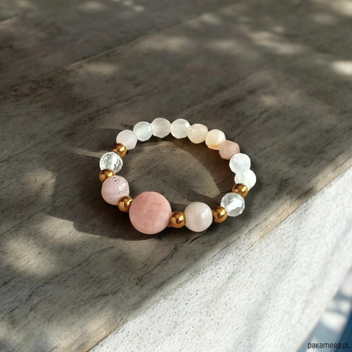 OPTYMIZM - pierścionek - kamień słoneczny,kryształ górski,hematyt