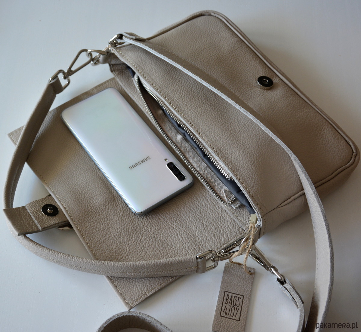 Torebka wykonana w Polsce, ze skóry pochodzącej z certyfikowanej włoskiej garbarni.