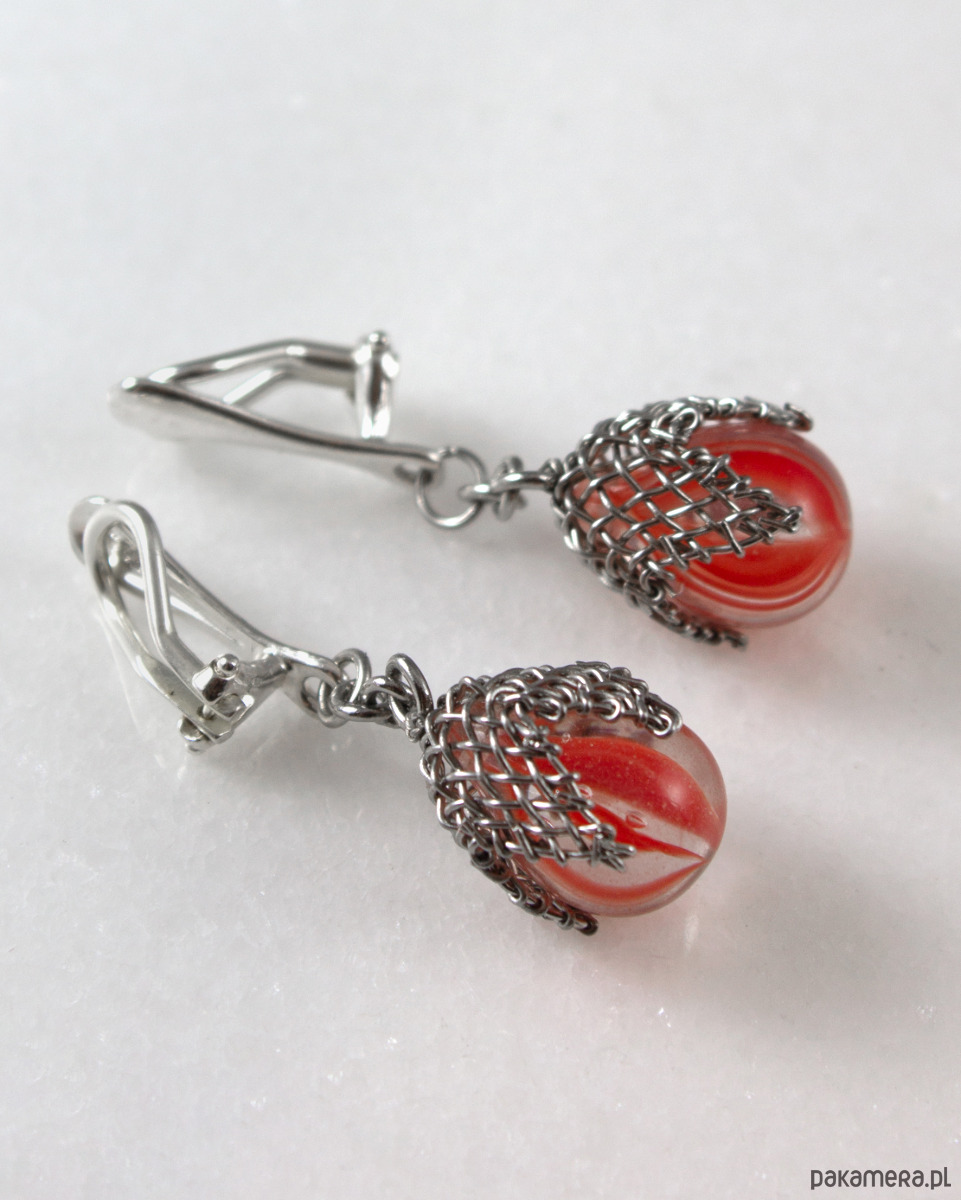 Oranżowe prążki w siateczce - klipsy (lub kolczyki)