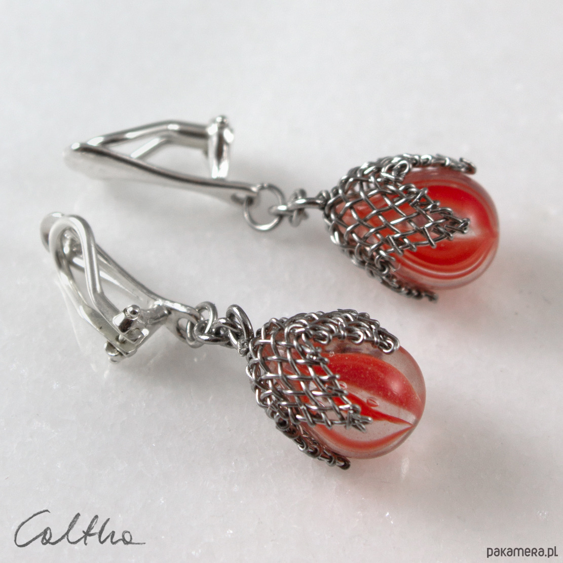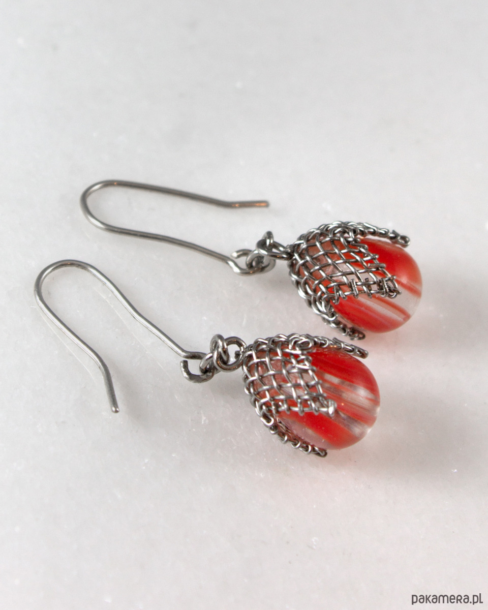 Oranżowe prążki w siateczce - kolczyki (lub klipsy)