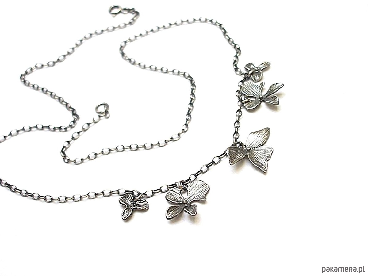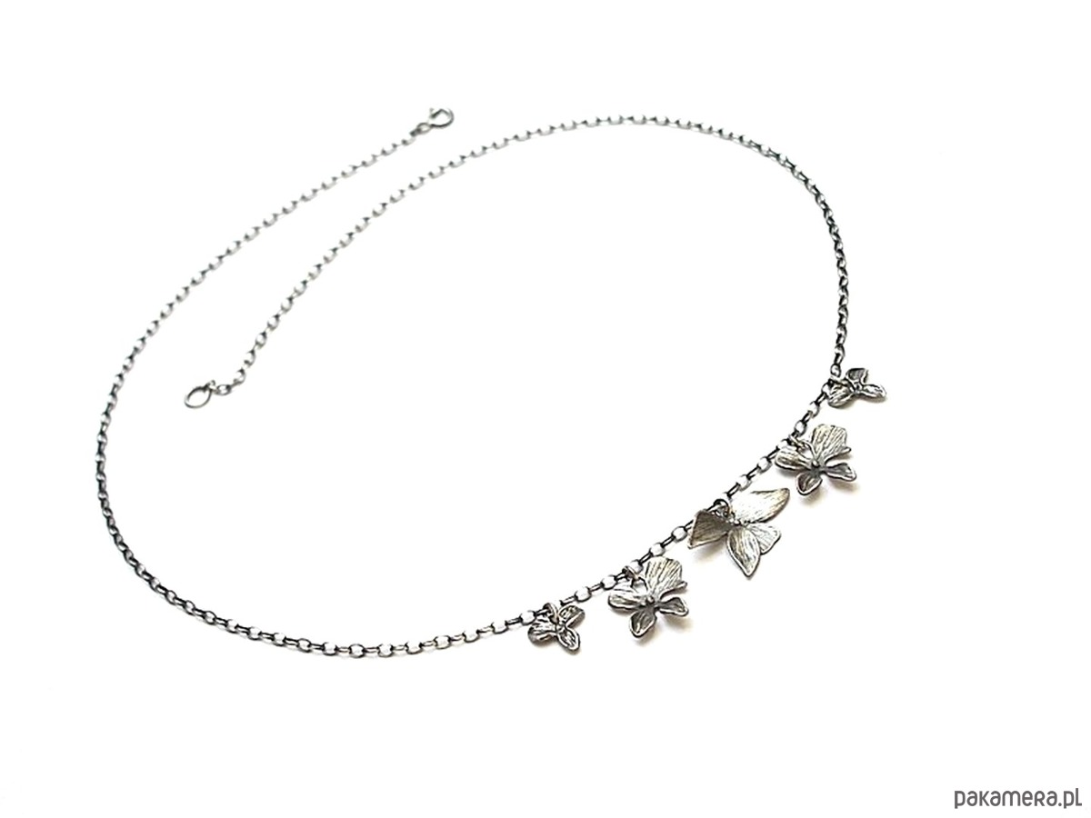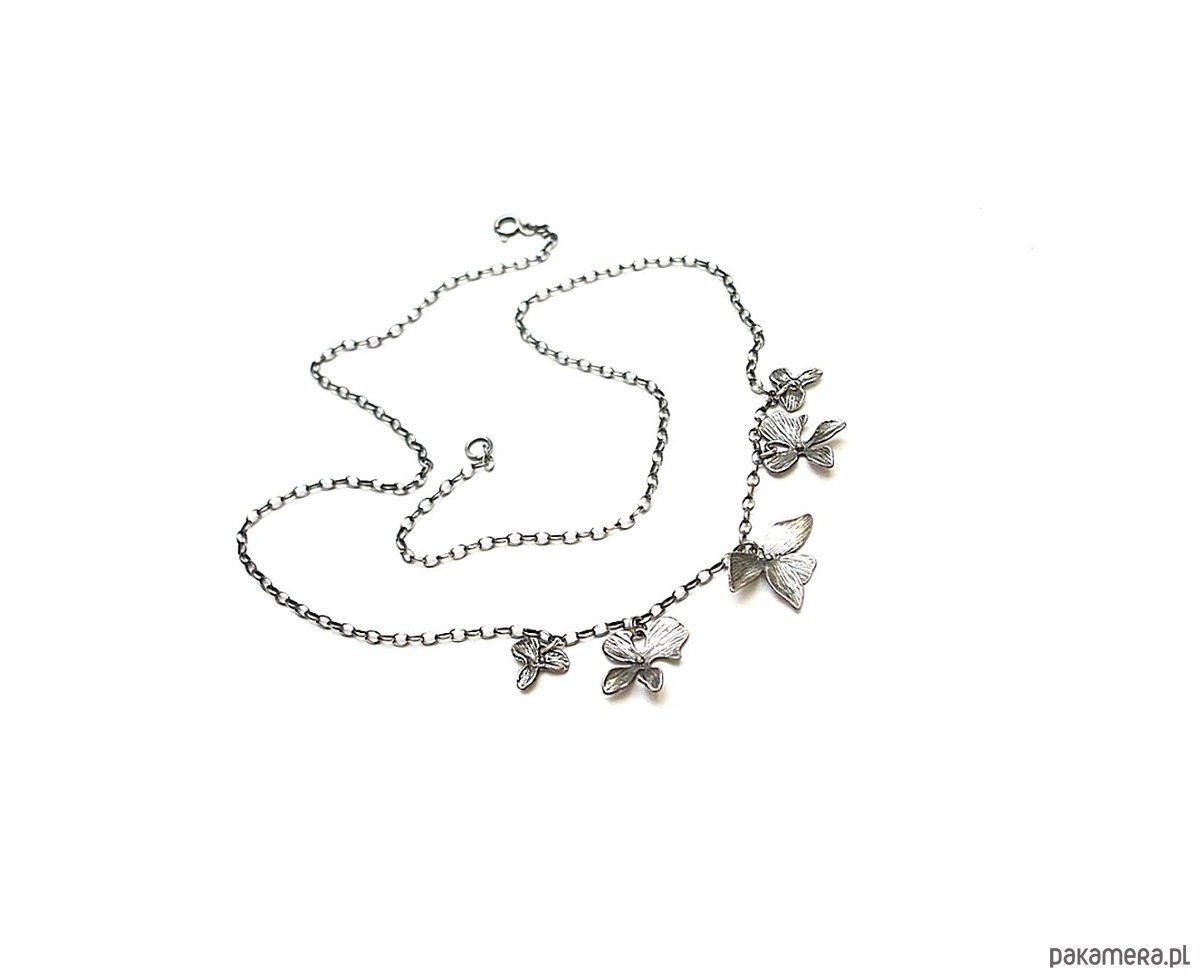Naszyjnik wykonany ze srebra [pr. 925] w połączeniu ze srebrnymi kwiatuszkami . Srebro oksydowane i przetarte. Całkowita długość łańcuszka 51,5cm. Biżuteria ozdobnie zapakowana