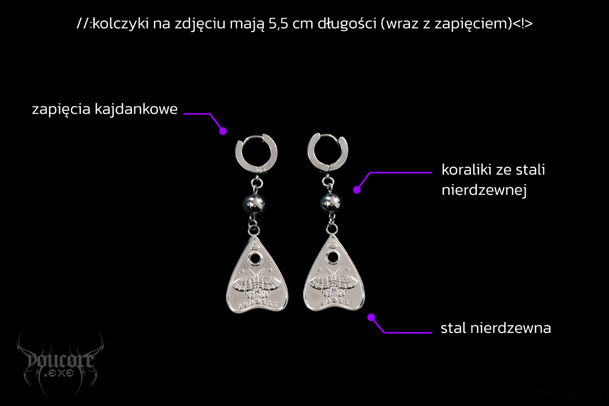 Kolczyki tabliczka ouija * stal nierdzewna * witchcore * goth *
