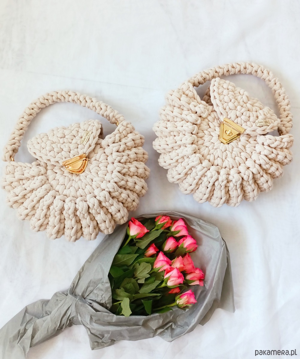 Torba dziergana na szydełku z wysokiej jakości sznurka bawełnianego 9mm.