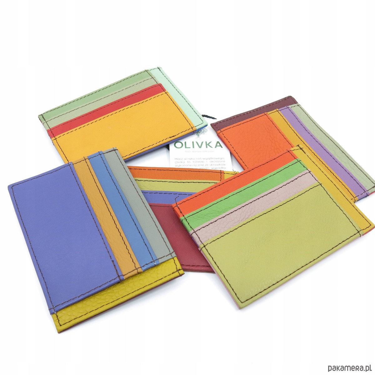 Organizer na karty wizytówki etui skórzane kolorowe ze skrawków eko Olivka