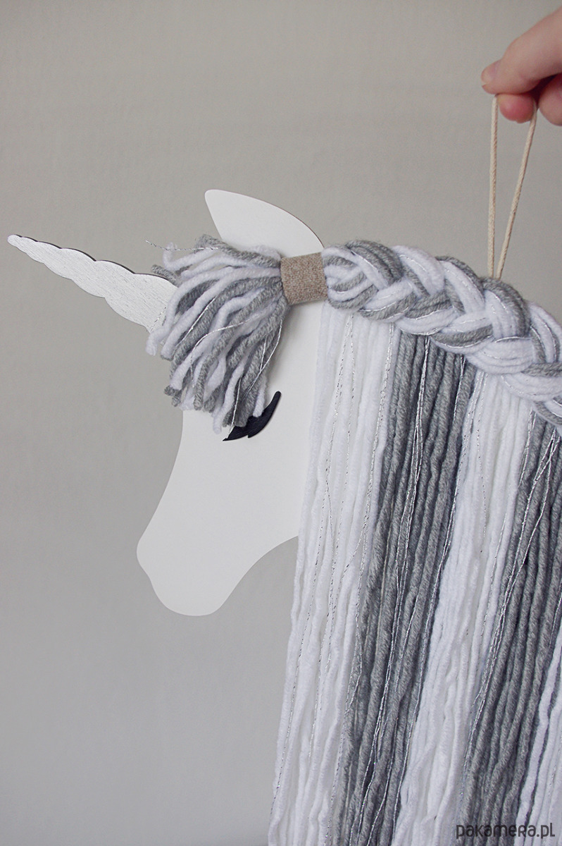 Do jego wykonania użyliśmy oszlifowanej sklejki brzozowej, kolorowe elementy pomalowaliśmy ręcznie ekologicznymi wodnymi farbami. Jako włosy jednorożca użyliśmy mięciutkiej włóczki akrylowej.