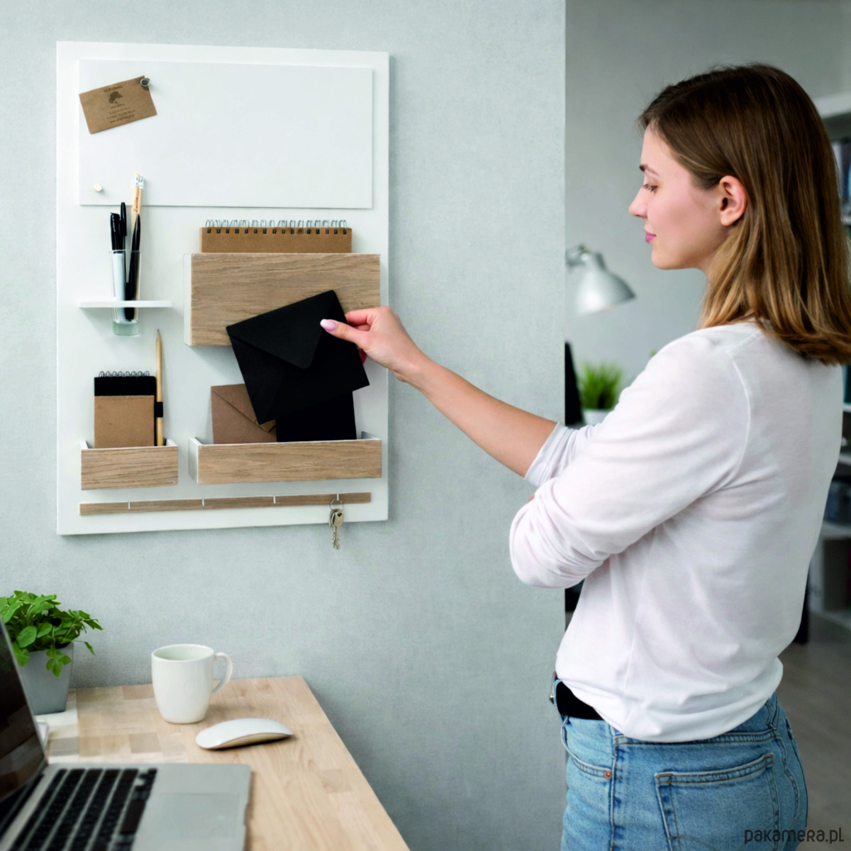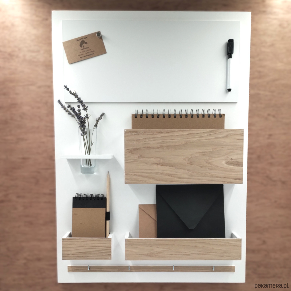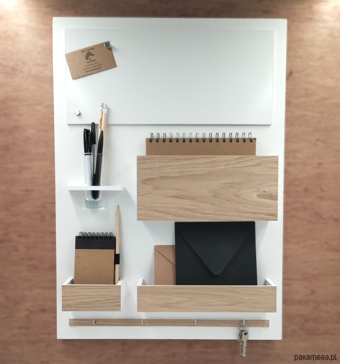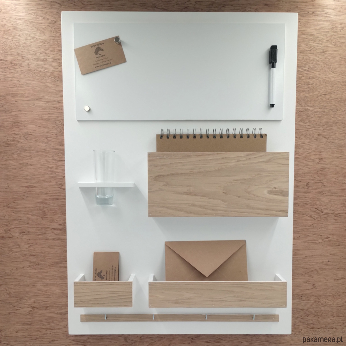 Drewniany Organizer - idealny do zwieszenia nad biurkiem (w domu i w pracy), w przedpokoju czy w poczekalni...