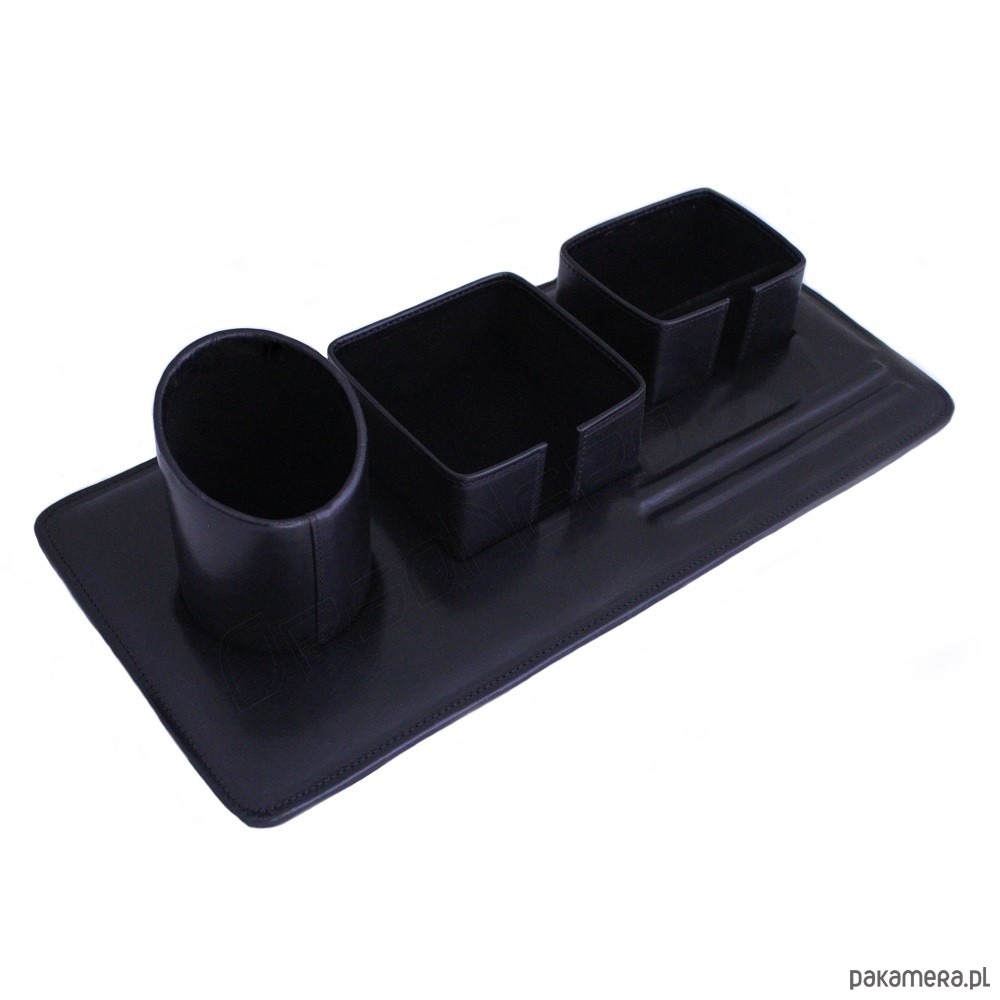 - 3 osobne pojemniki na długopisy, karteczki, wizytówki bądź telefon,