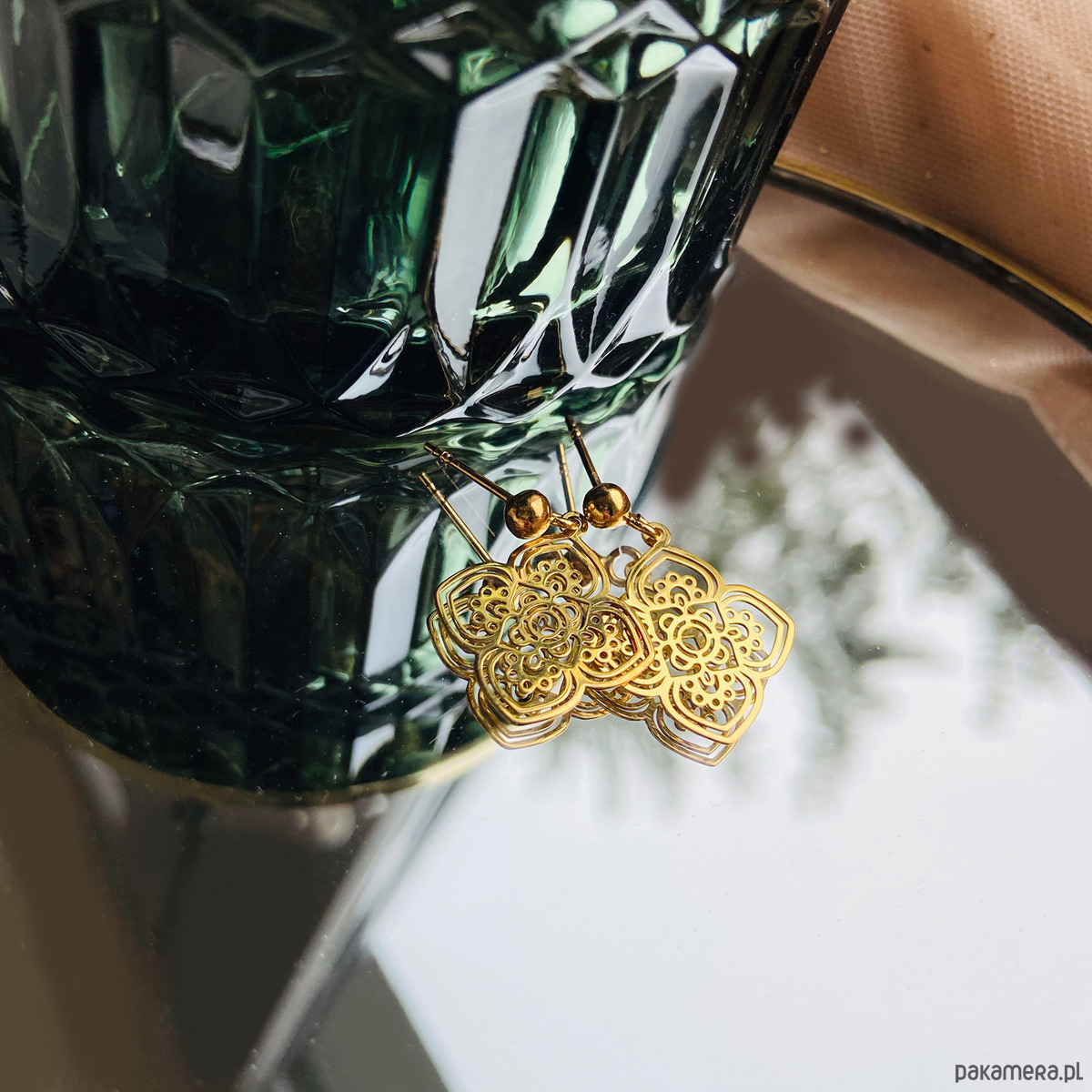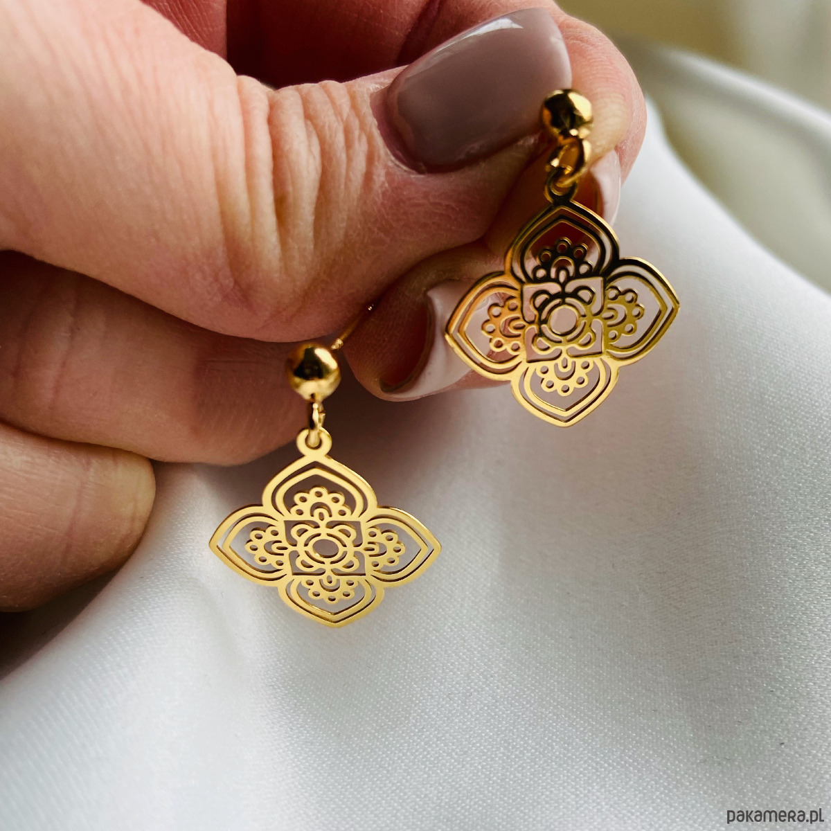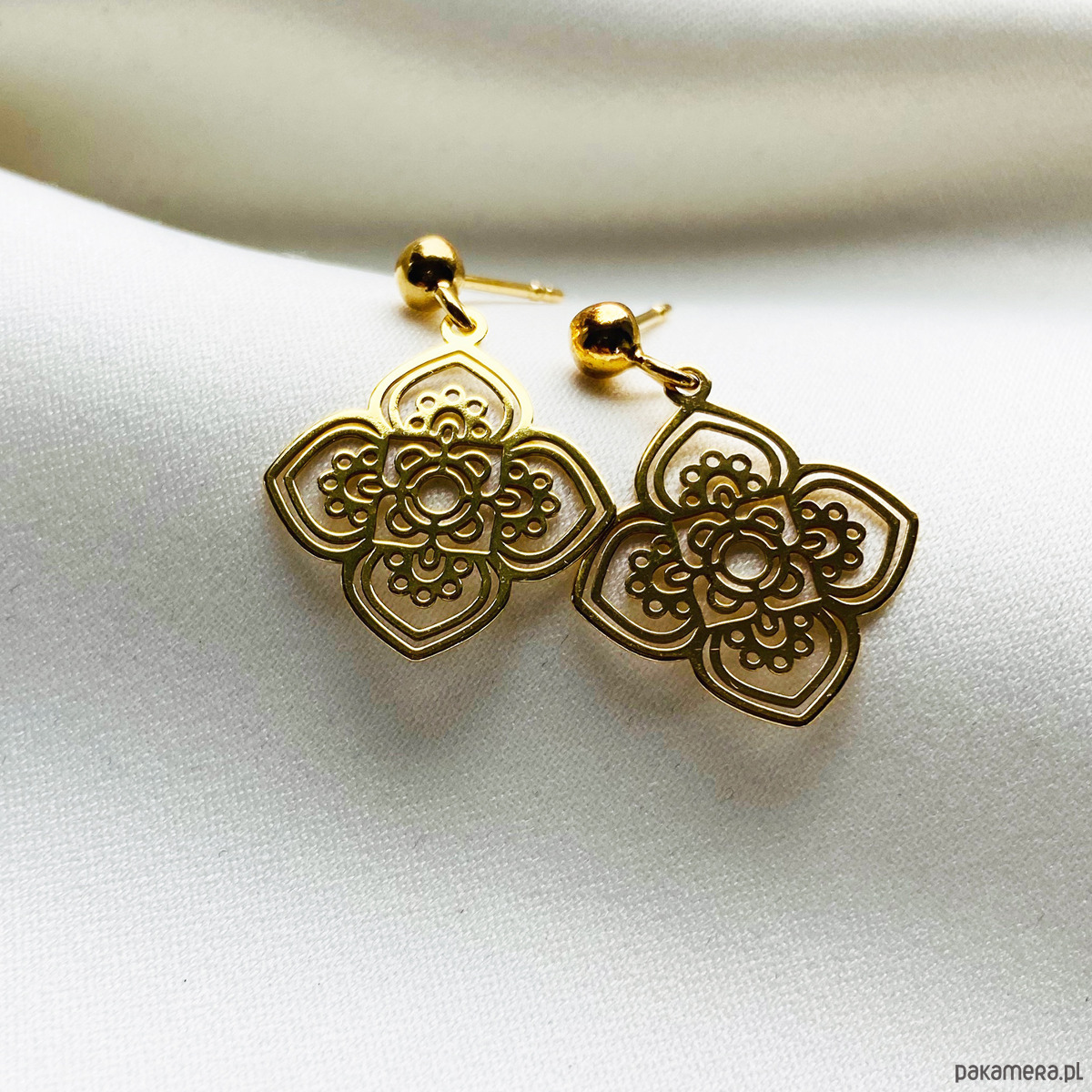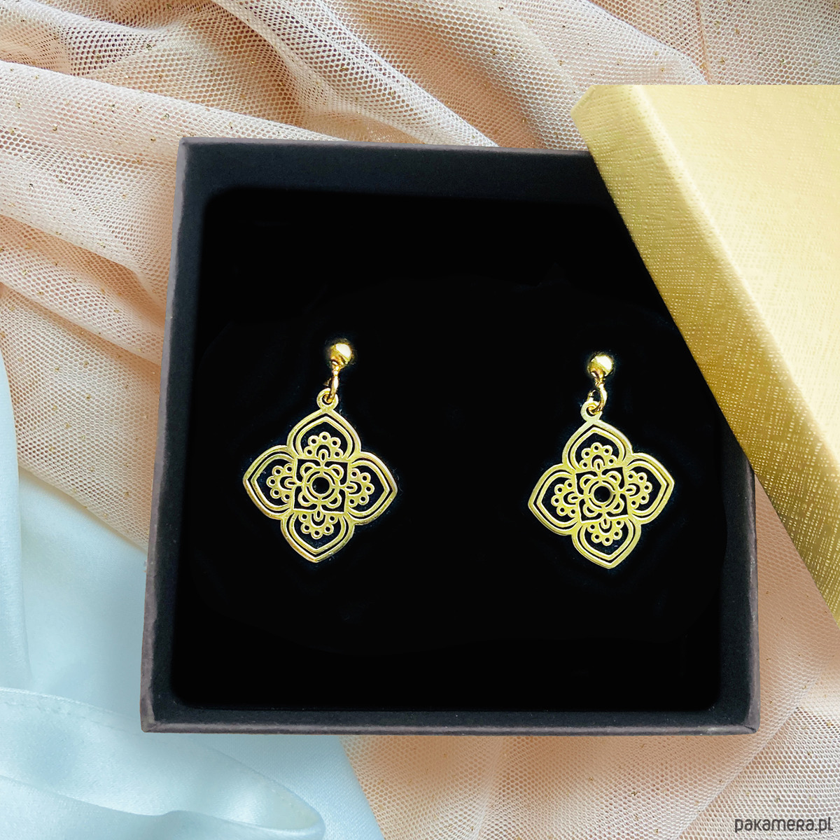 Orientalne filigranowe kolczyki, Pozłacane Srebrne