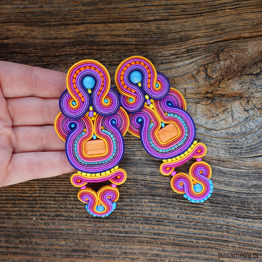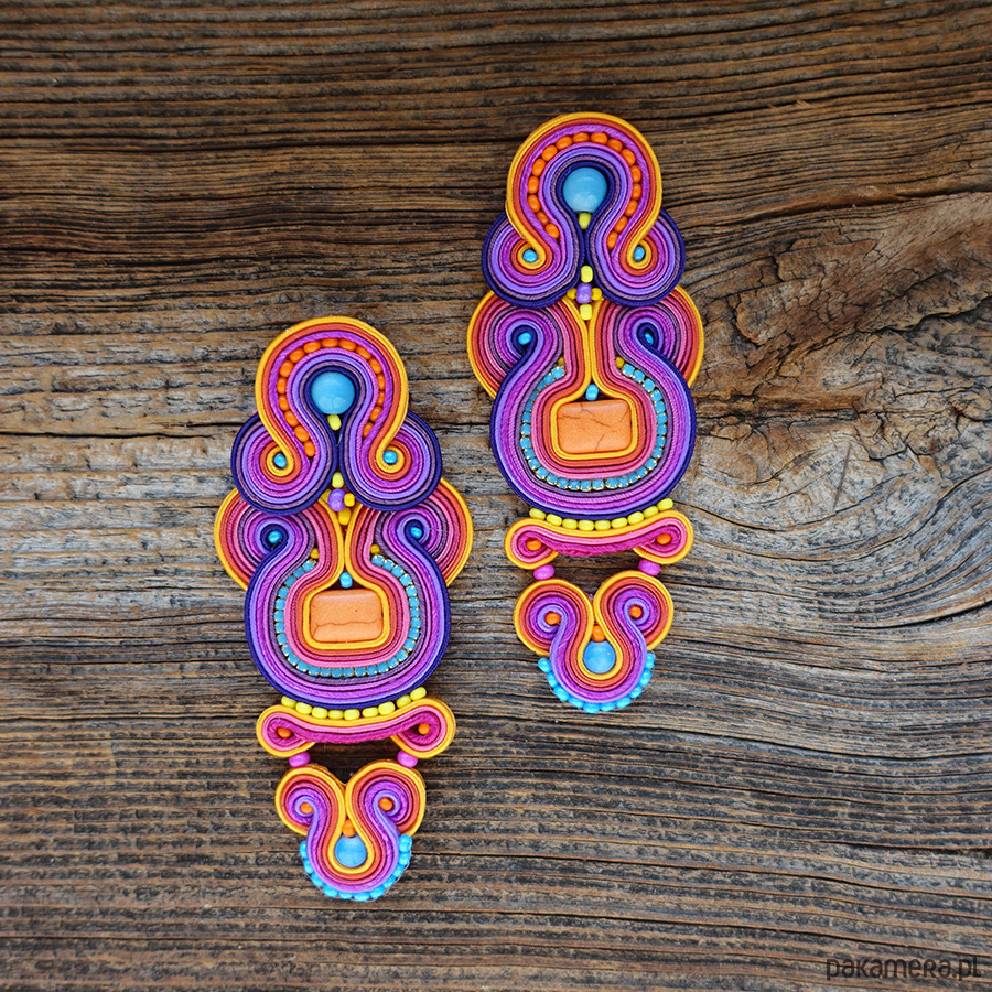 Kolczyki w stylu orientalnym, pełne energii i koloru. Wyrazista forma i bogata paleta barw przyciągają wzrok i nadają stylizacji charakteru. To biżuteria dla osób, które lubią odważne dodatki i nie boją się koloru.