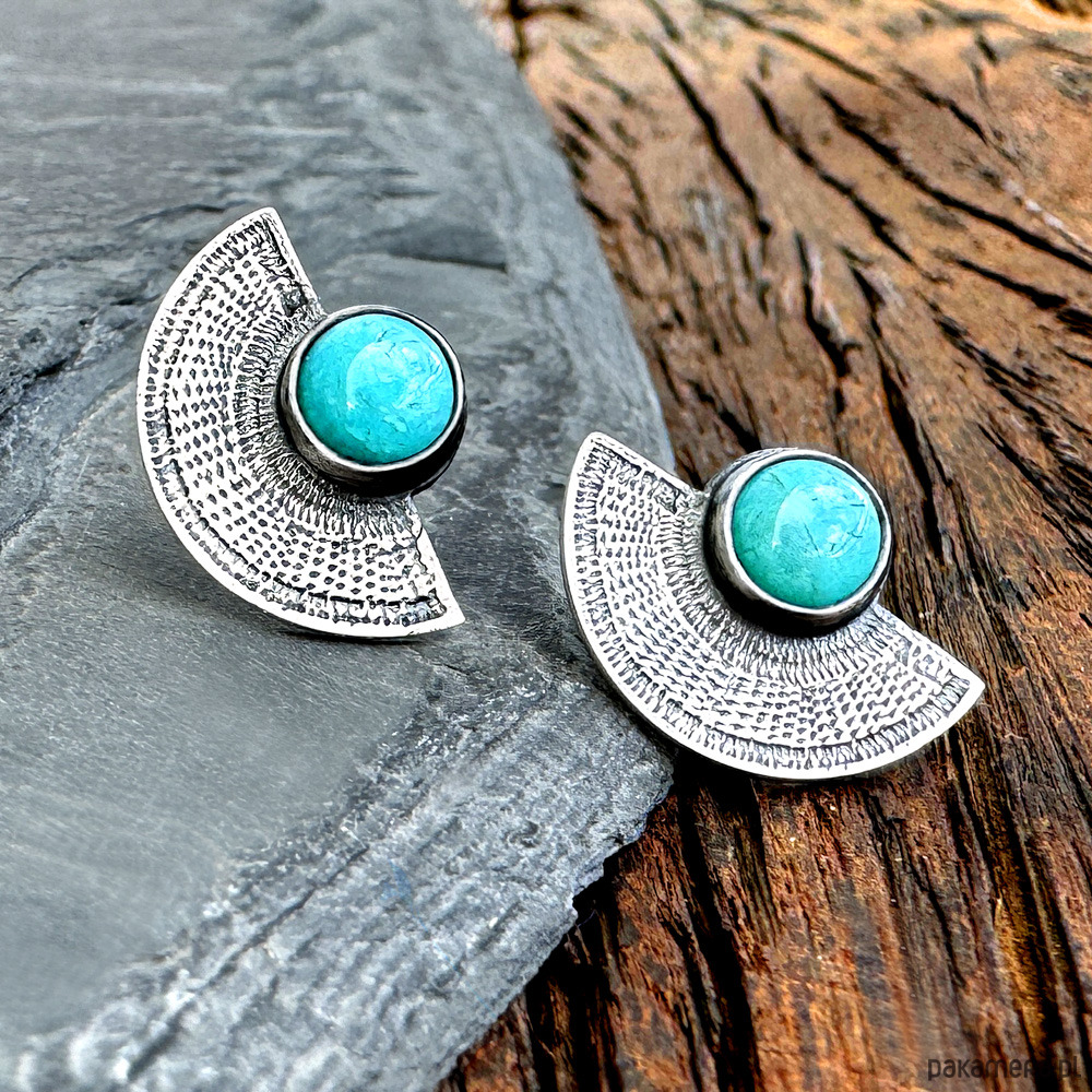 Orientalne kolczyki wkrętki srebrne wachlarze z amazonitem