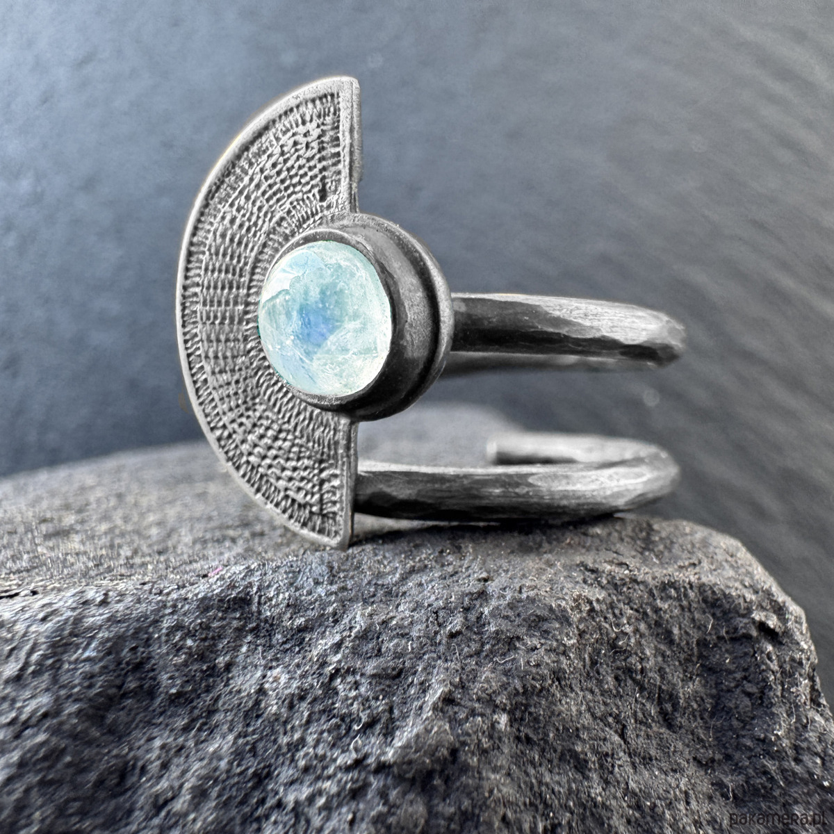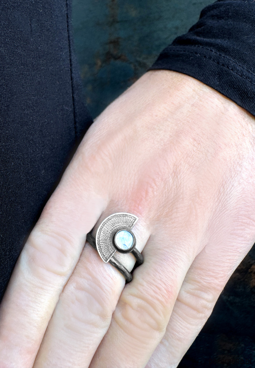 Orientalny pierścionek wachlarz z kamieniem księżycowym