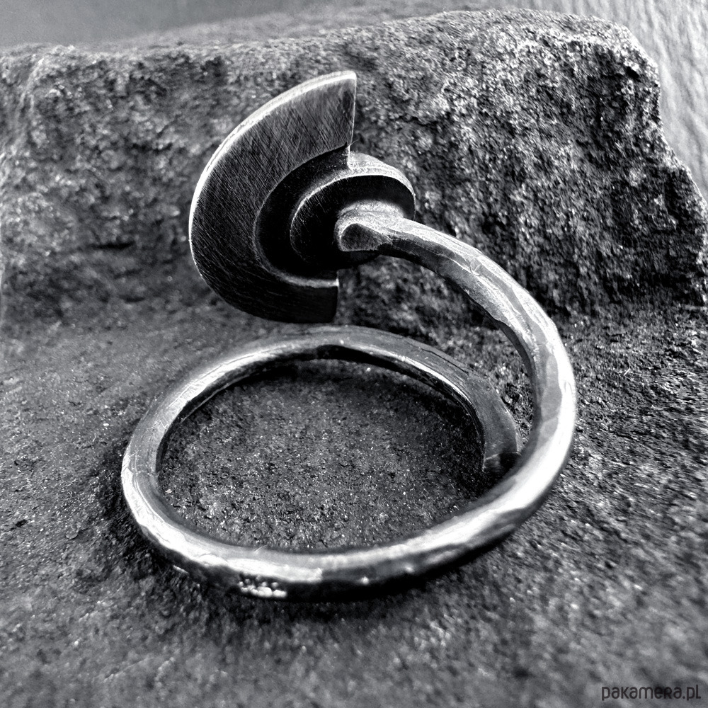 Otwarty pierścionek z kolekcji "KISS OF ORIENT" wykonany został z ręcznie profilowanego oksydowanego srebra próby 925 oraz naturalnego kamienia księżycowego. Klasyka elegancji w ciekawym, surowym stylu. Idealne proporcje, komfort noszenia i opcja regulacji sprawią że zakochasz się w nim od pierwszego wejrzenia. Polecamy w komplecie z kolczykami wiszącymi lub wkrętkami oraz wisiorkiem.