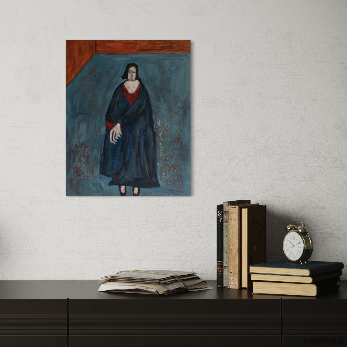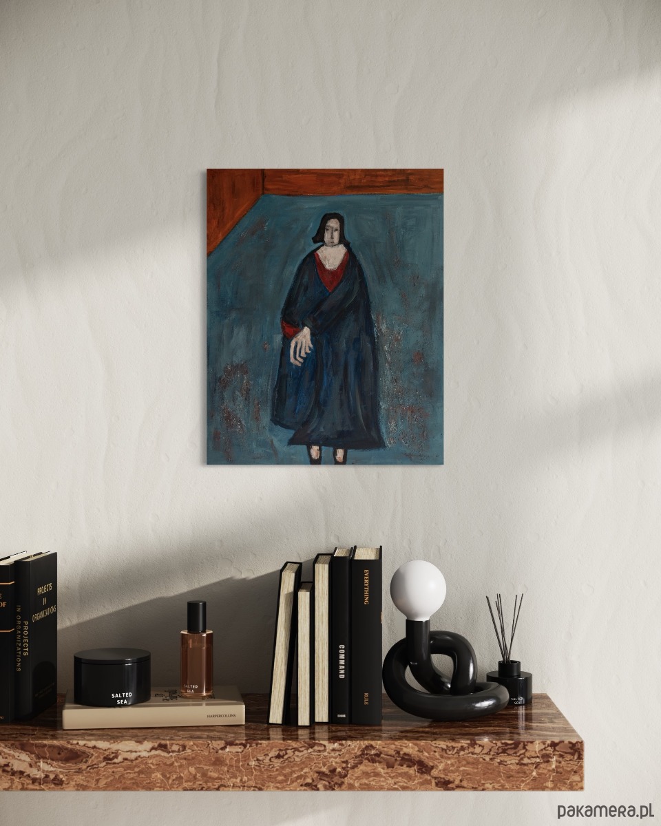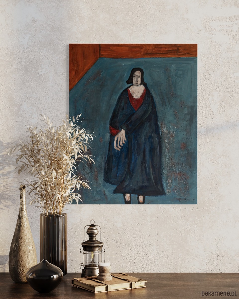 ORYGINAŁ. Obraz na płótnie - Kobieta w niebieskim płaszczu 50x40 cm