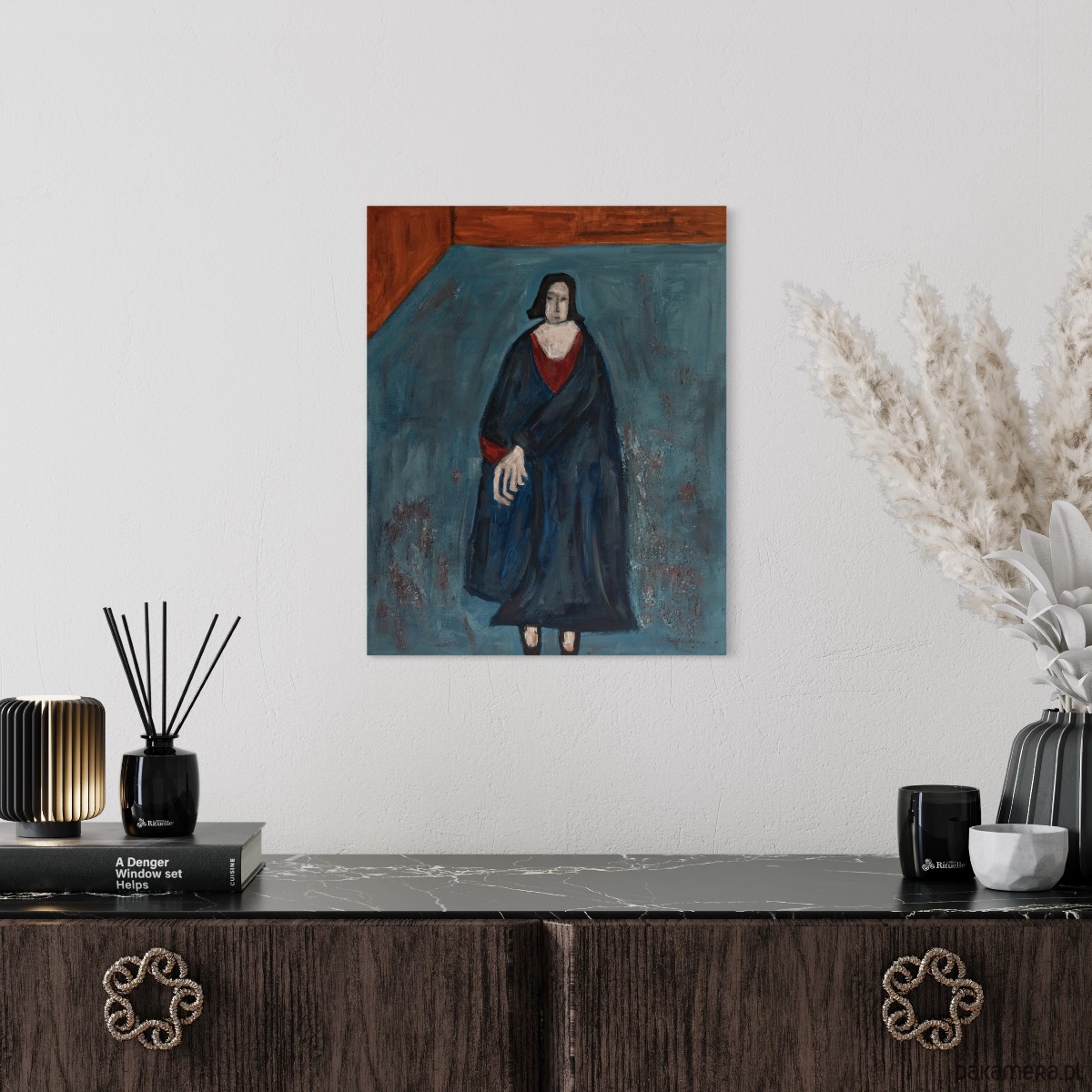 - podłoże: zagruntowane płótno bawełniane naciągnięte na drewniane krosna. Obraz gotowy do zawieszenia lub oprawienia.