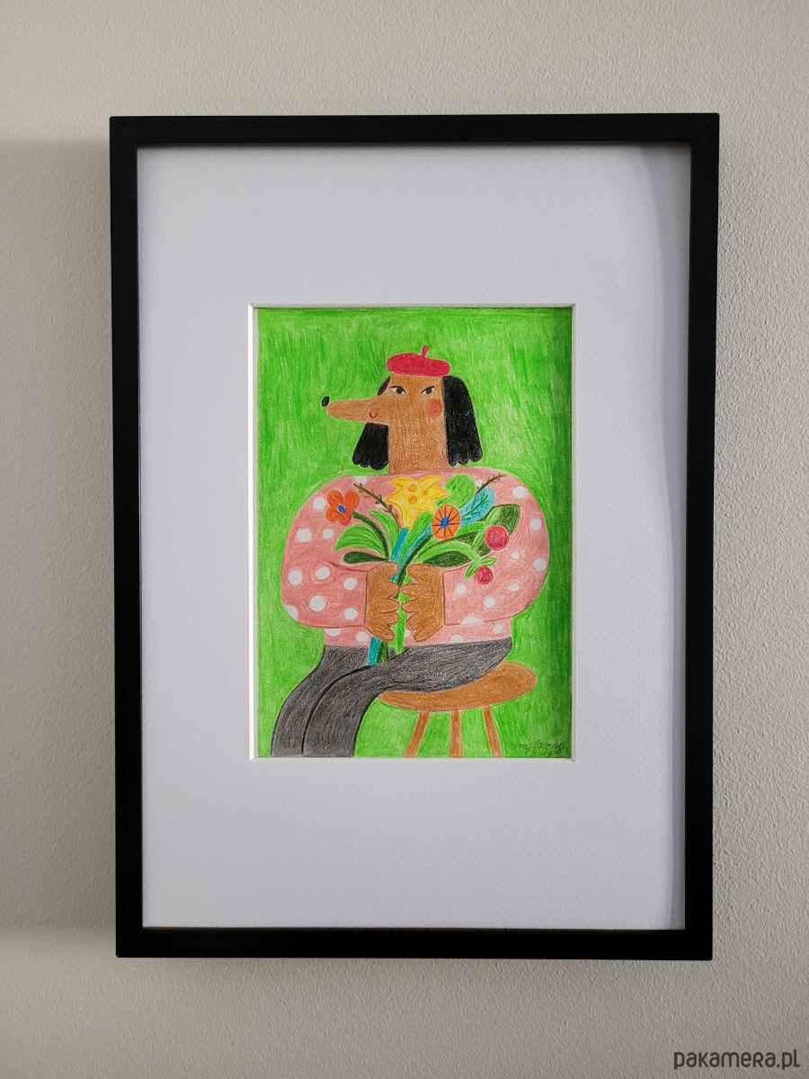 Oryginał w ramce / pies z bukietem