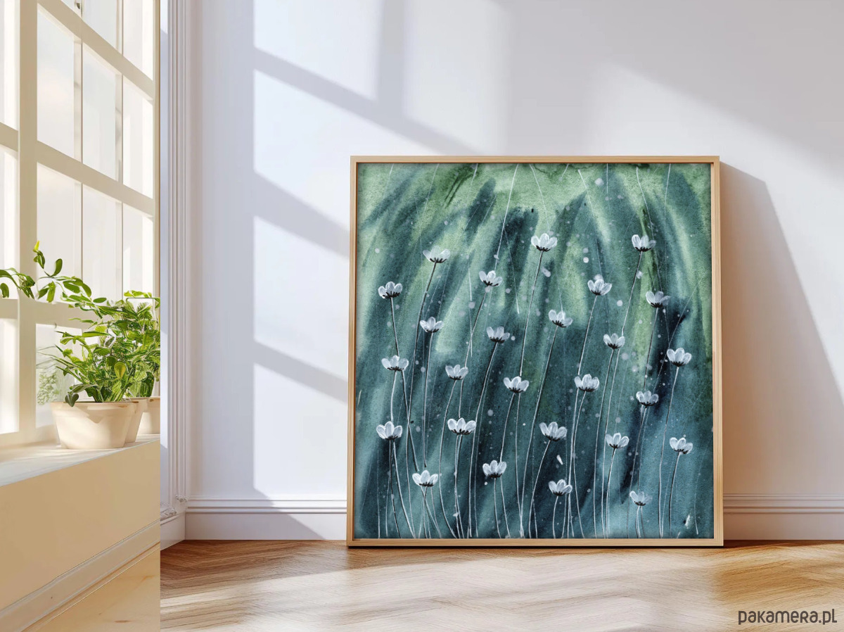 Oryginalna akwarela. Białe kwiaty 20x20cm