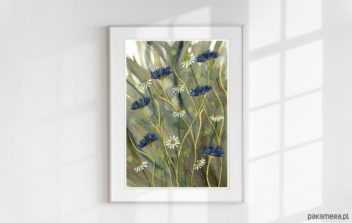 Oryginalna akwarela. Chabry i rumianki A4