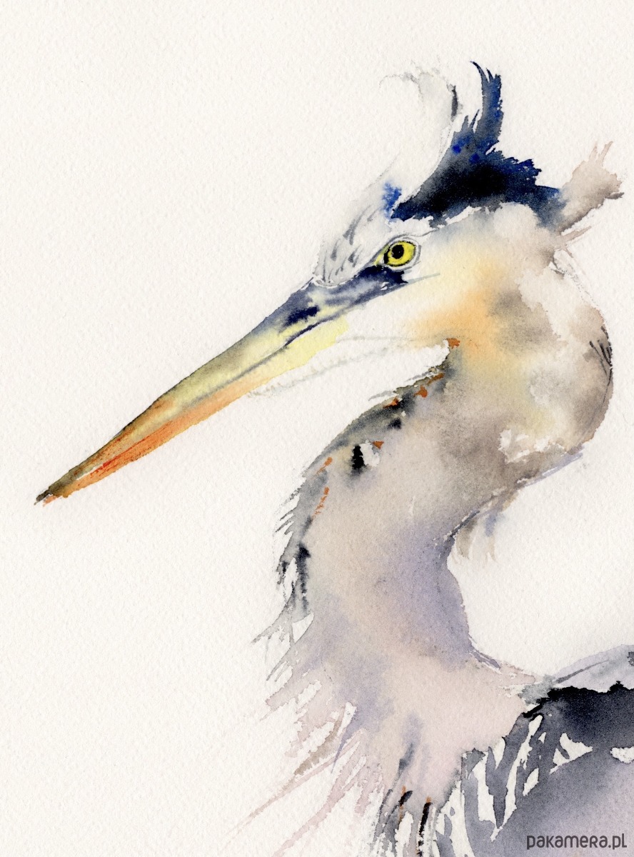 Oryginalna akwarela. Czapla