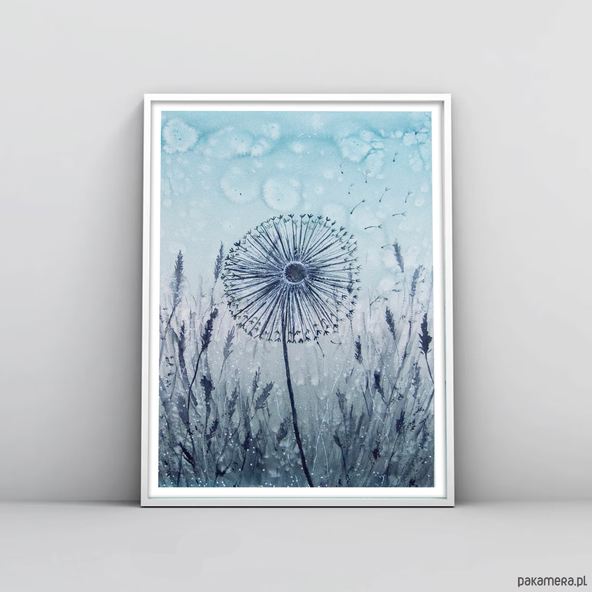 Oryginalna akwarela. Dmuchawiec na łące A4