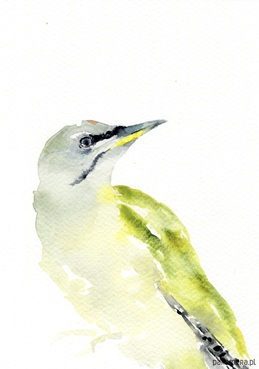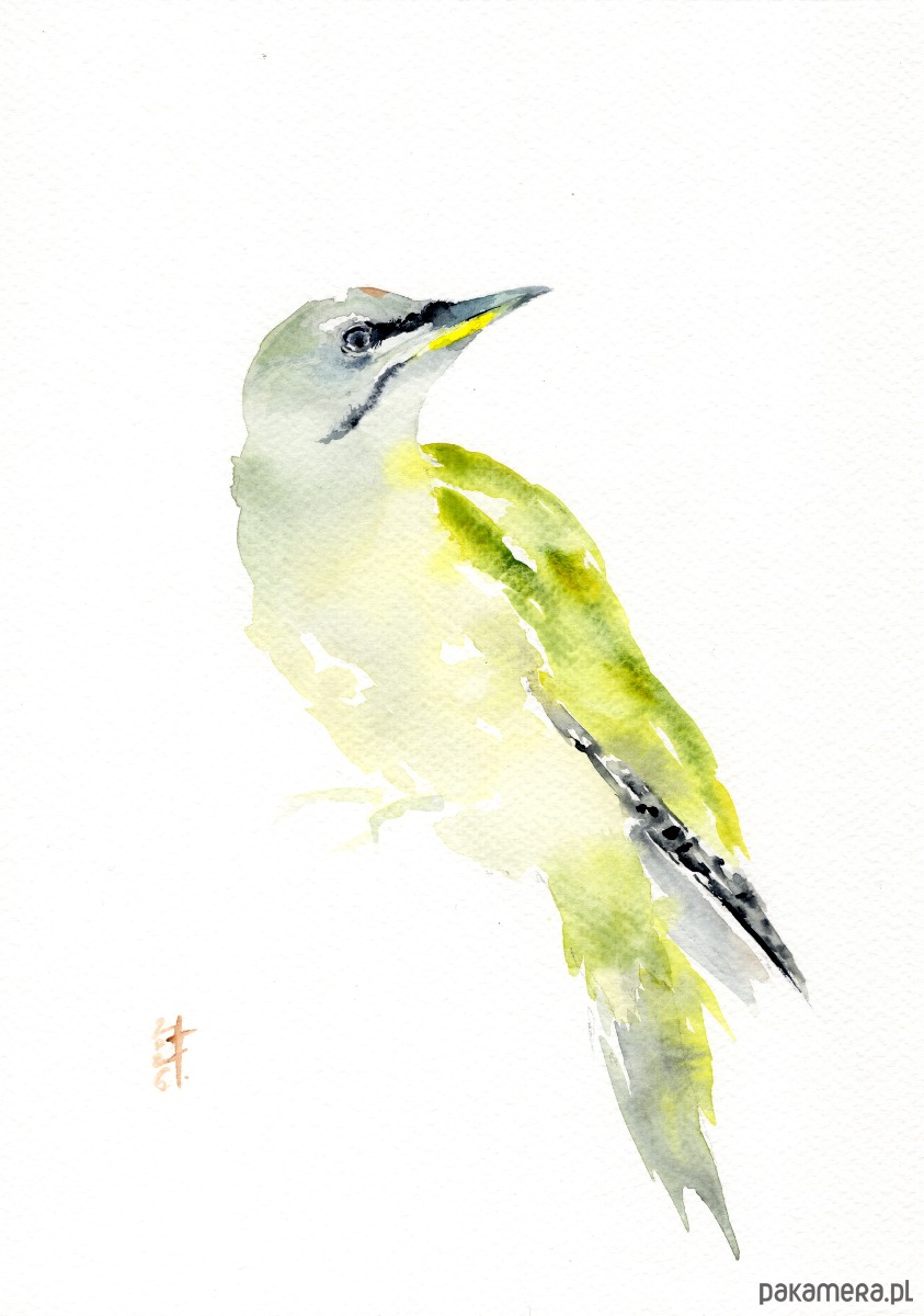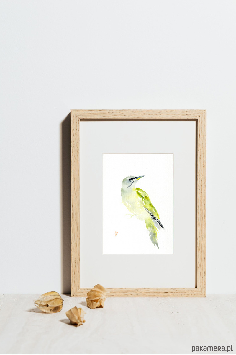 Oryginalna akwarela. Dzięcioł zielonosiwy