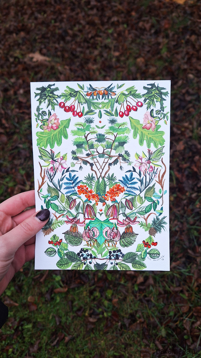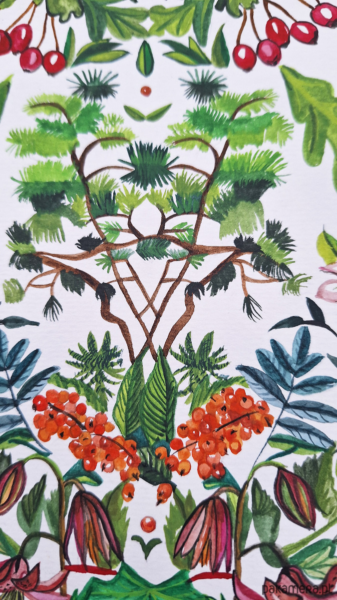 Oryginalny obraz namalowany akwarelami oraz gwaszem na grubym papierze akwarelowym o gramaturze 250g/m2.