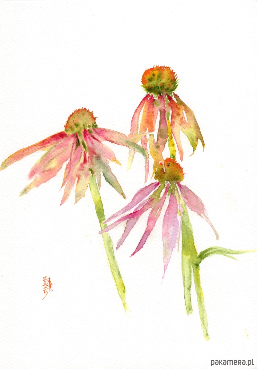 Oryginalna akwarela. Jeżówka