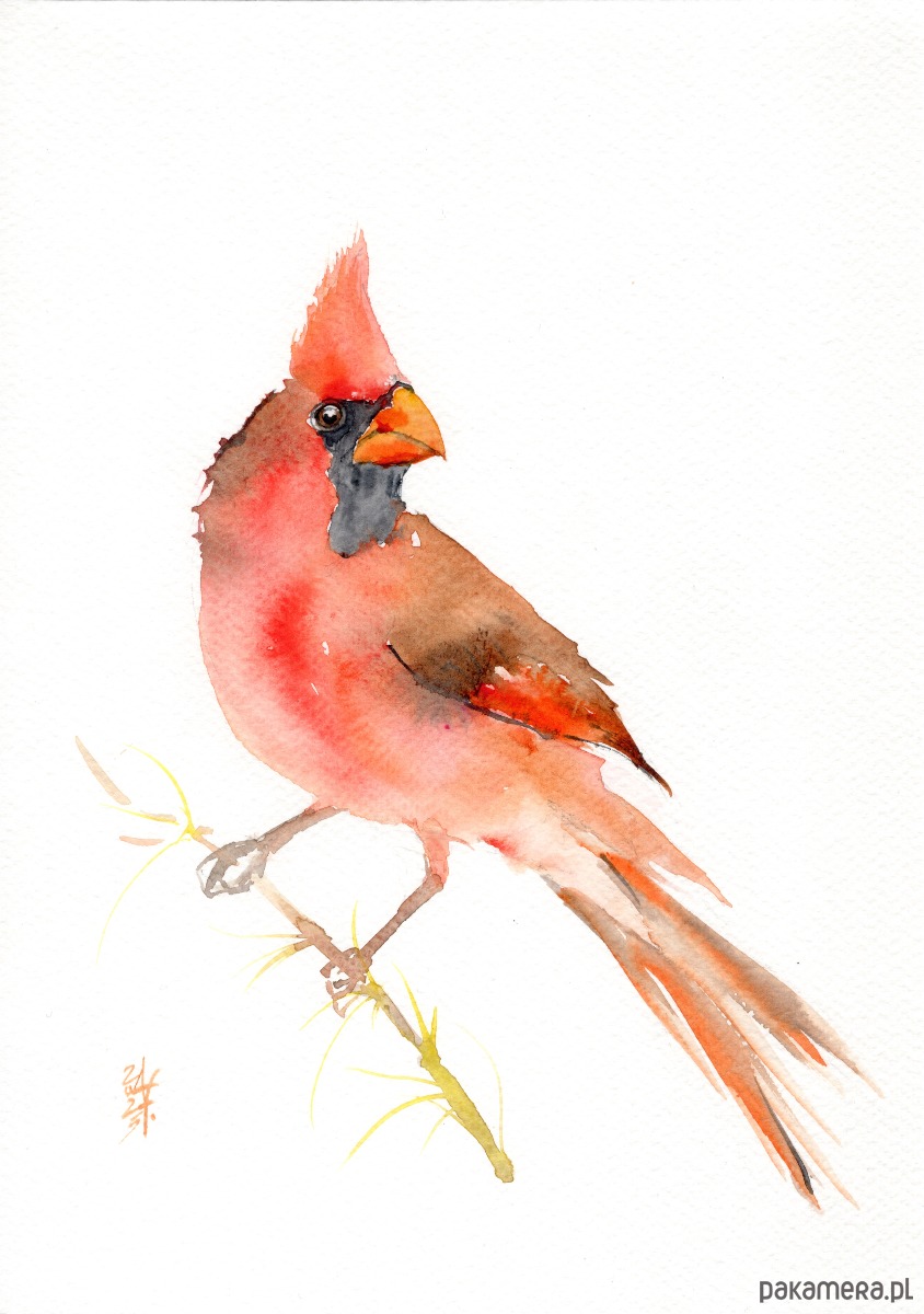 Oryginalna akwarela. Kardynał