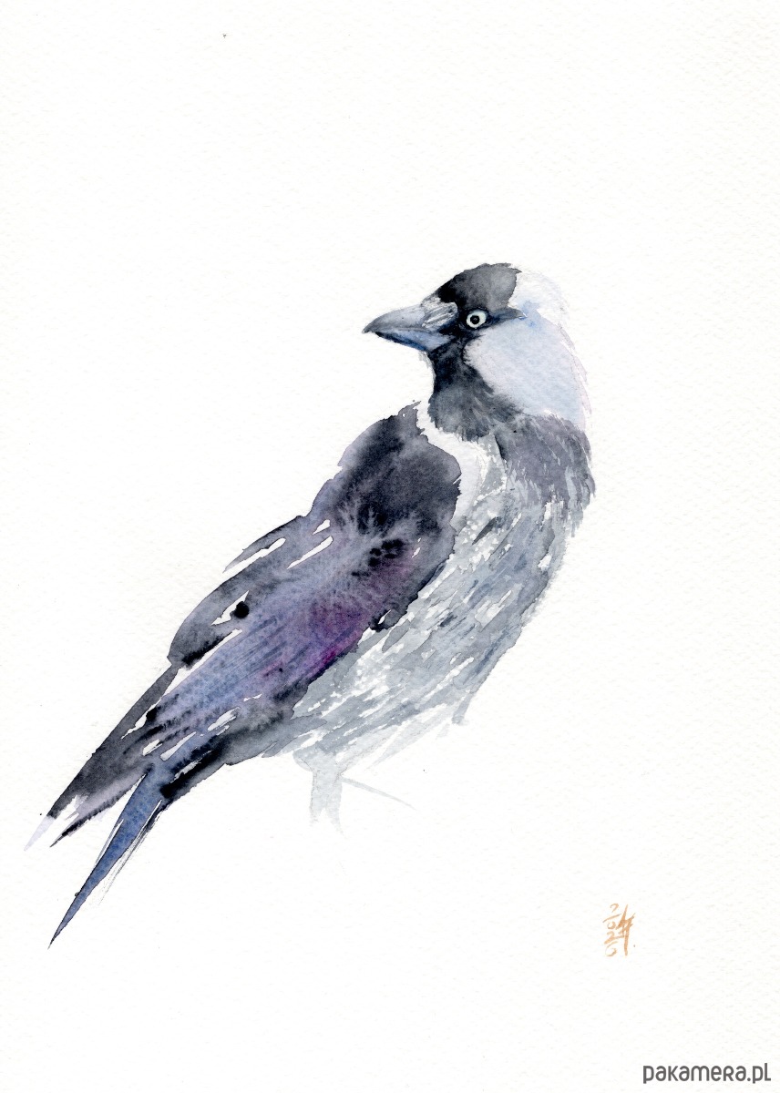 Oryginalna akwarela. Kawka