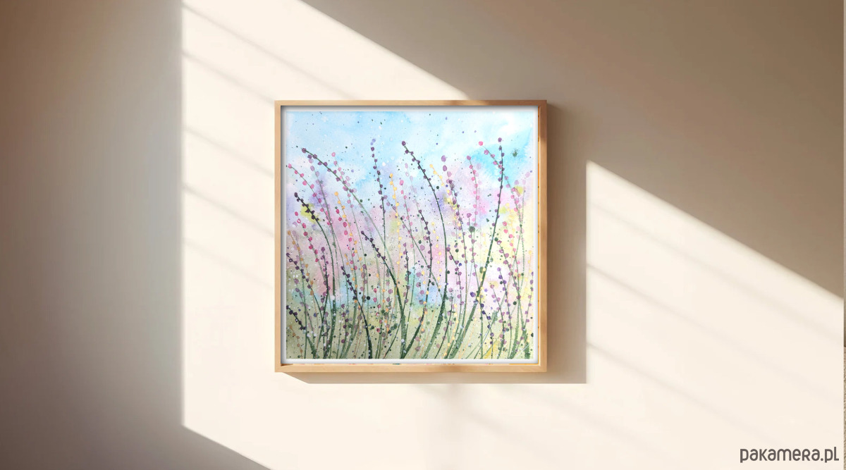 Oryginalna akwarela. Kolorowa łąka 23x23cm