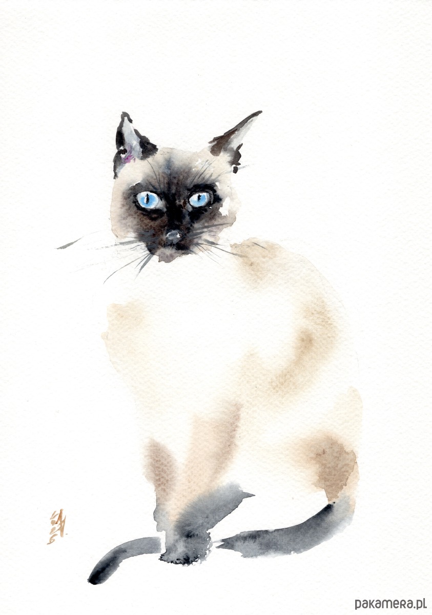 Oryginalna akwarela. Kot