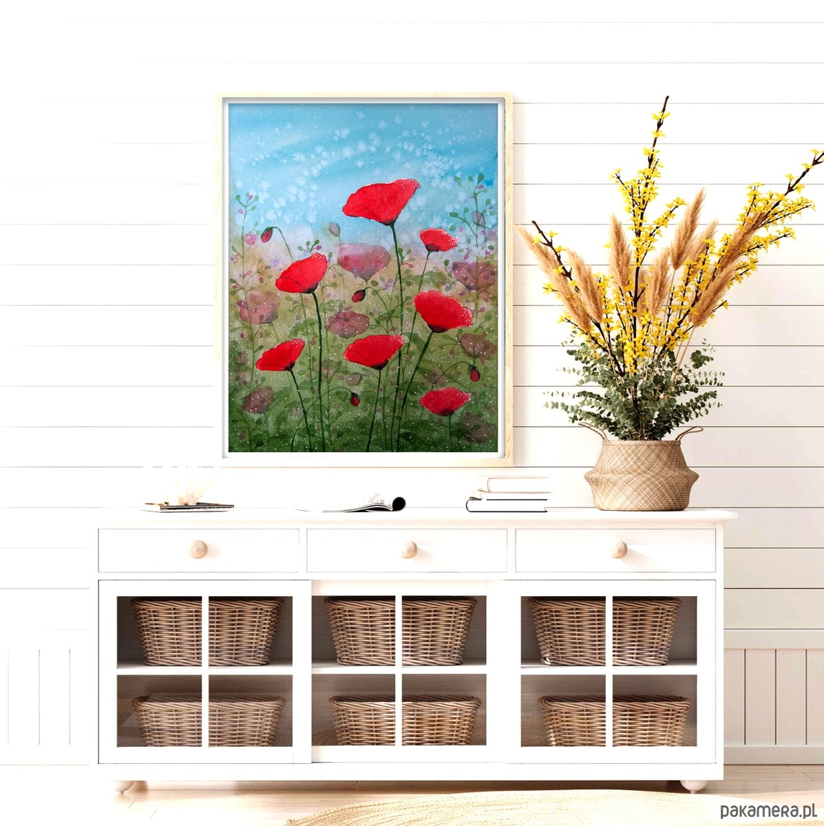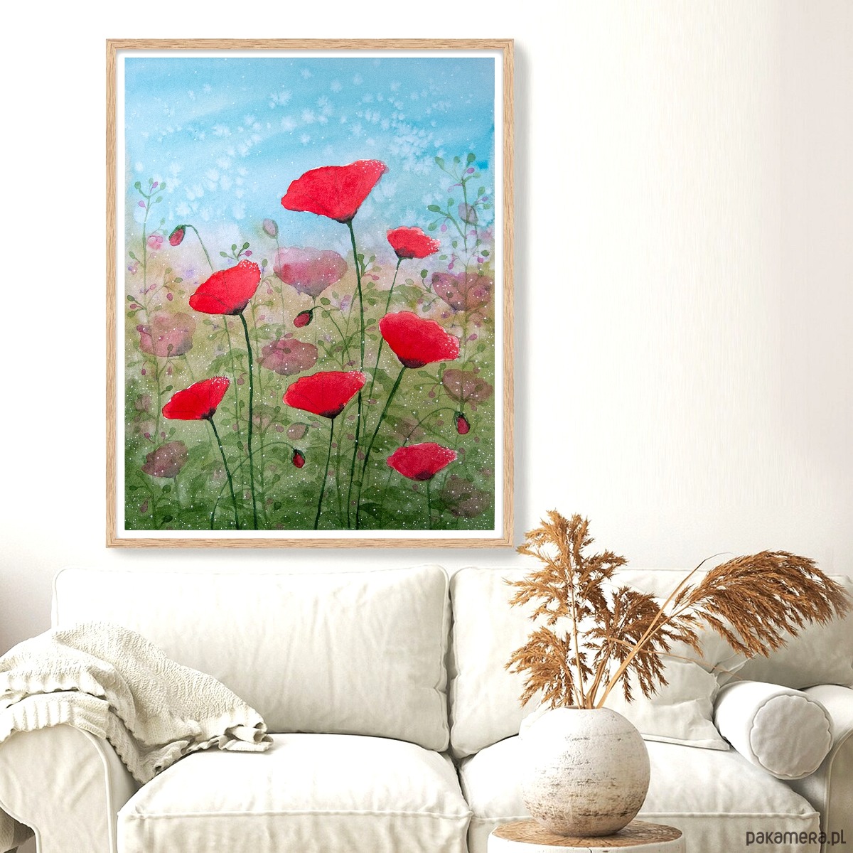 Oryginalna akwarela. Łąka pełna maków 24x32