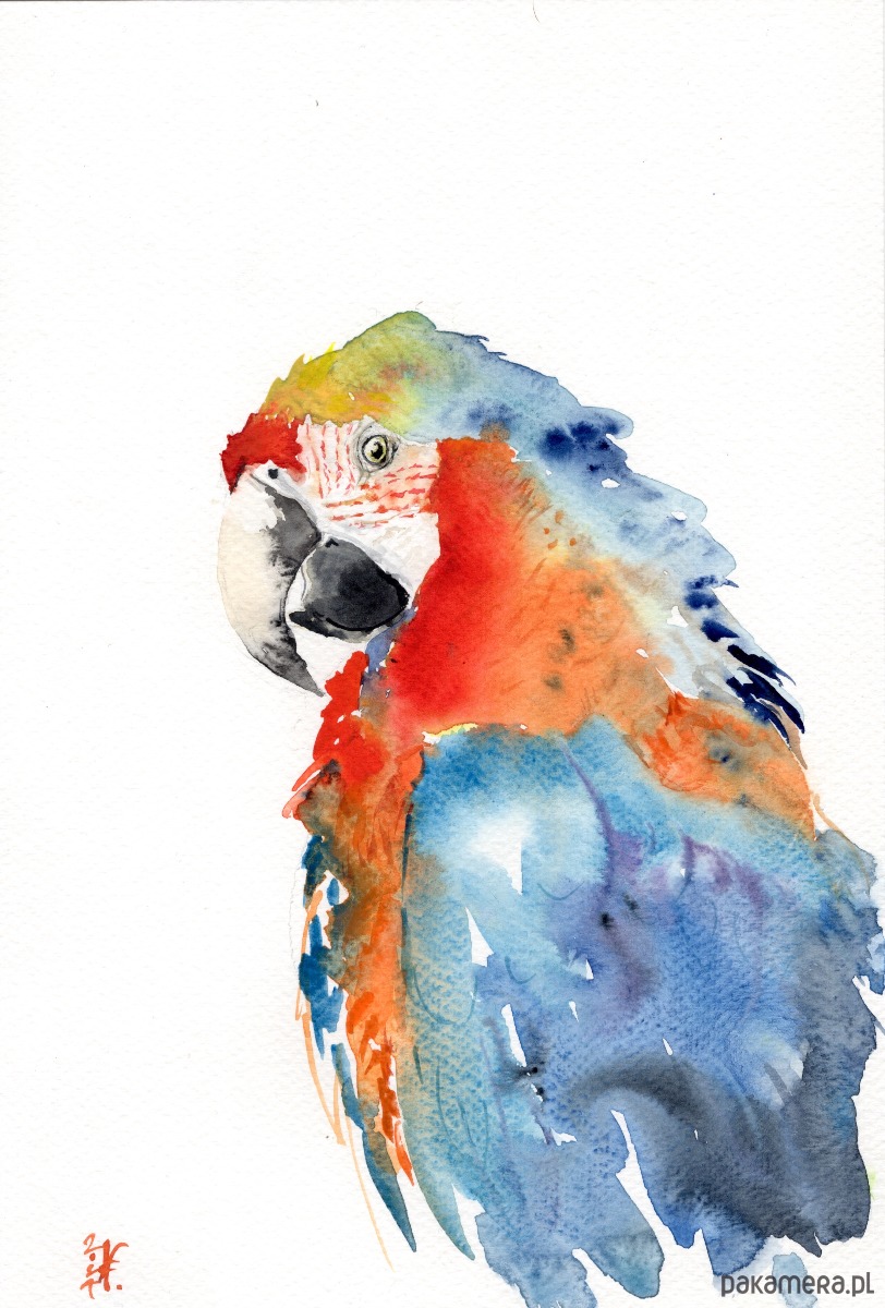 Oryginalna akwarela. Papuga