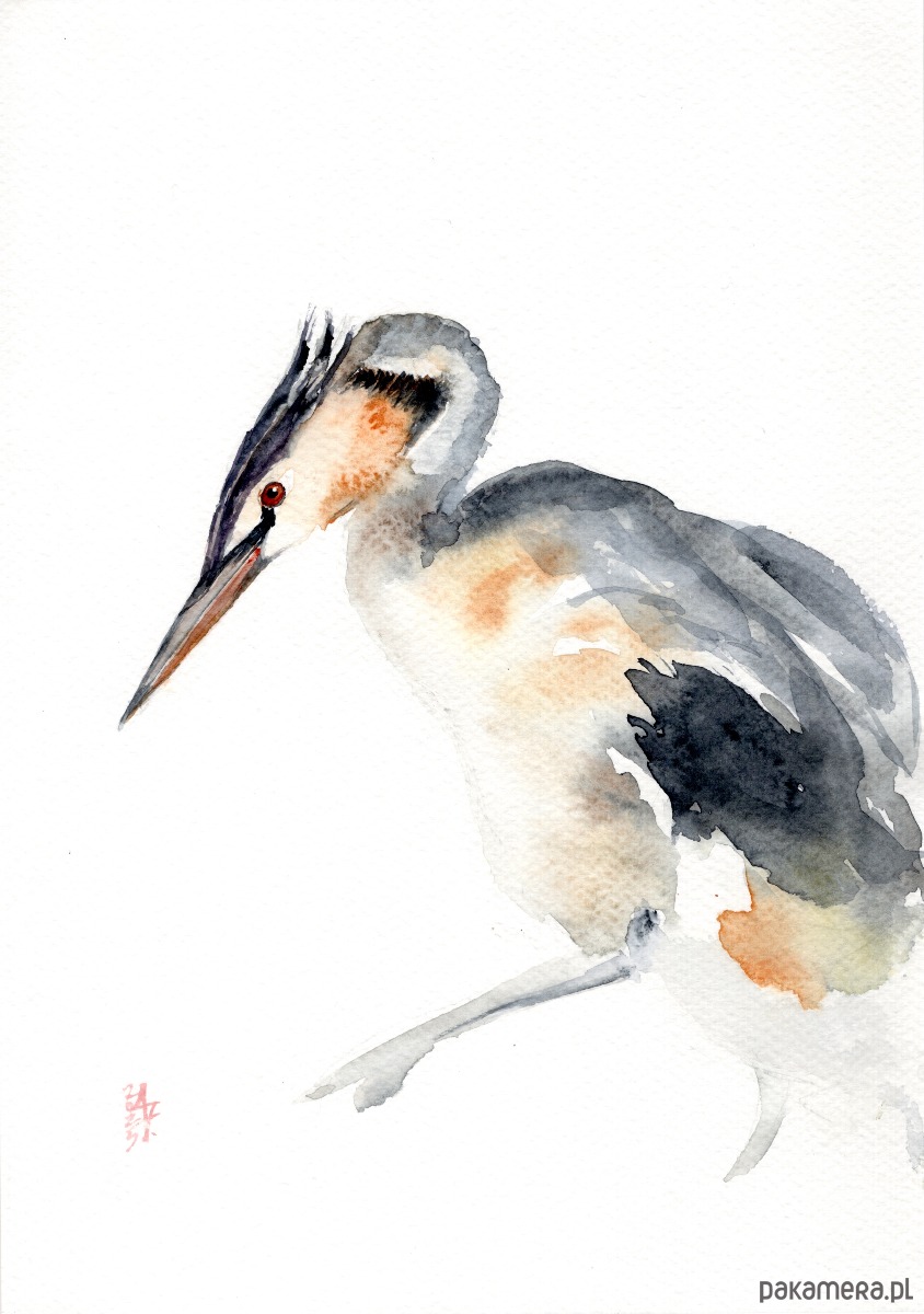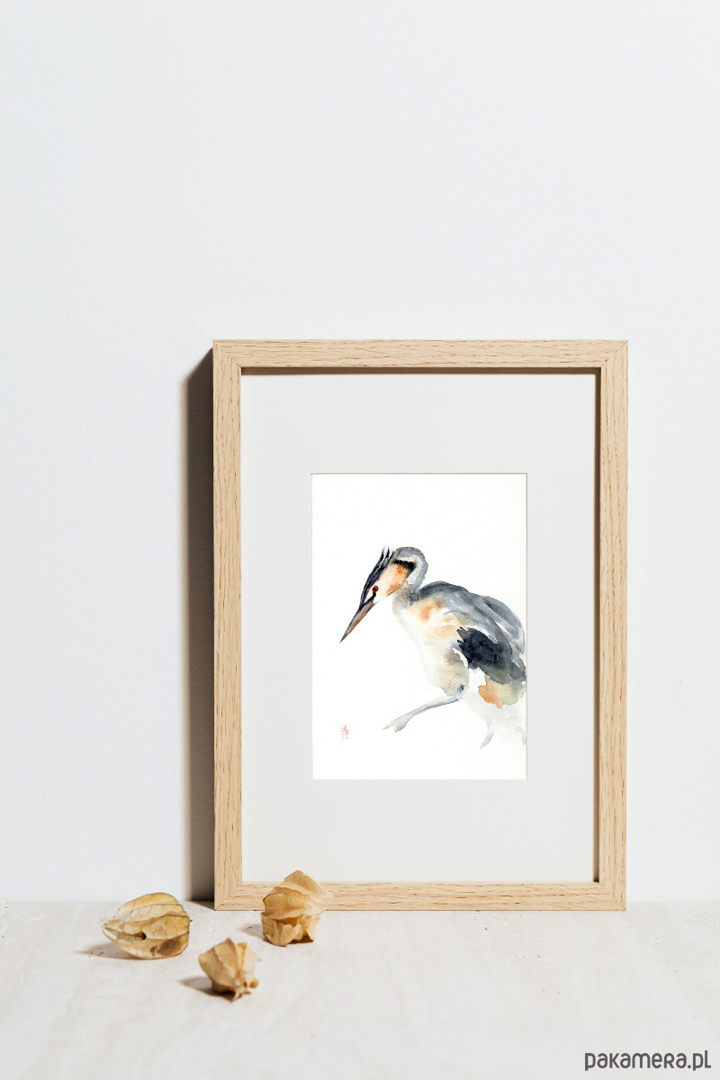 Oryginalna akwarela. Perkoz dwuczuby